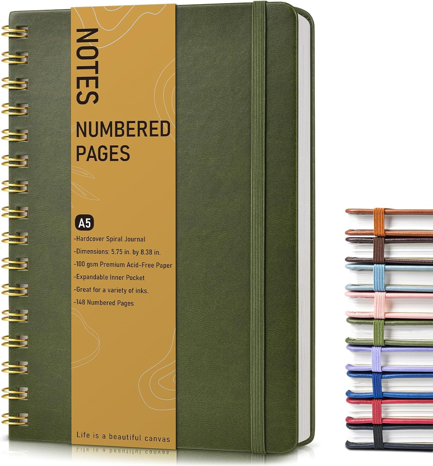 Lined Spiral Journal Notebook, A5 Hardcover Spiral Journals for Women Men, 150 N