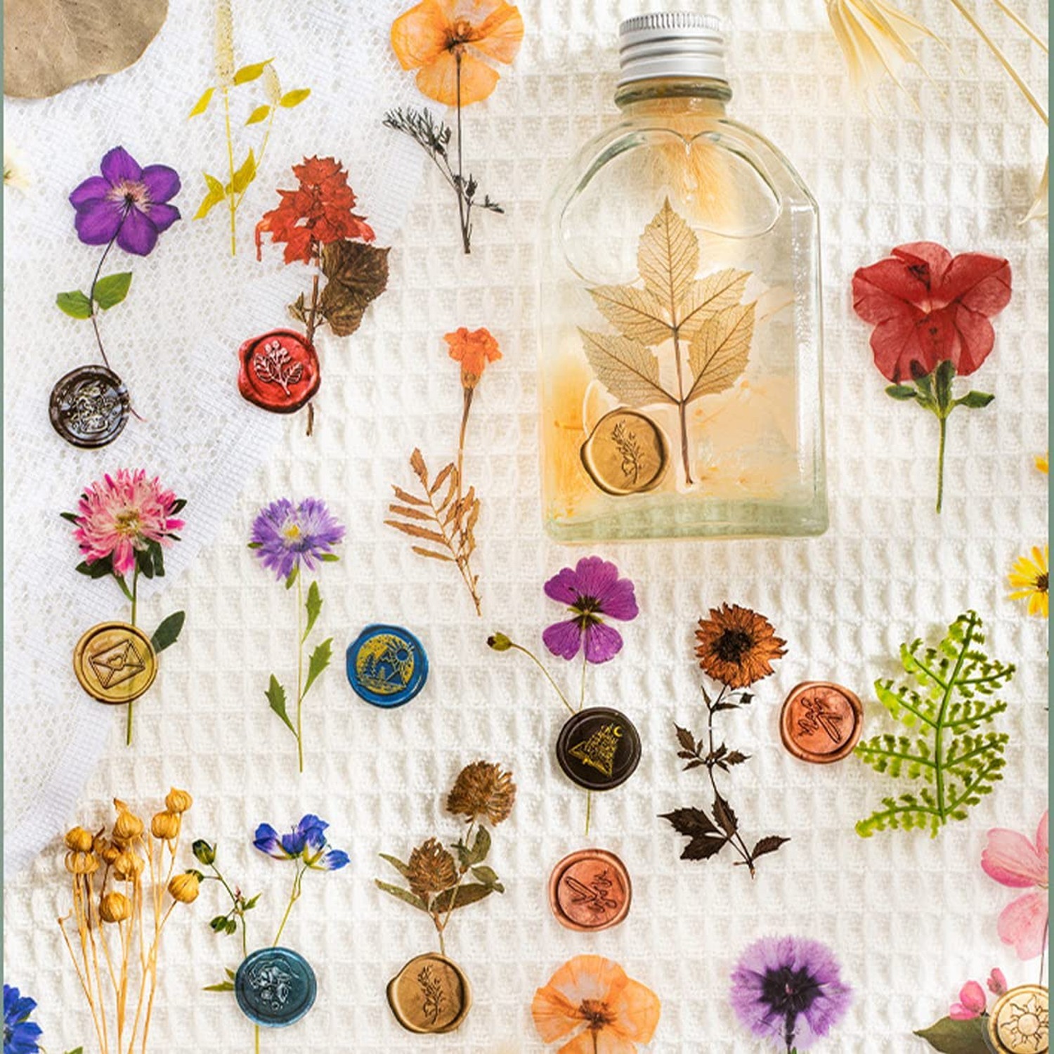 40pcs PET Purple Dried Flower Wax Seal Stickers Transparent Floral Vinyl Stic...