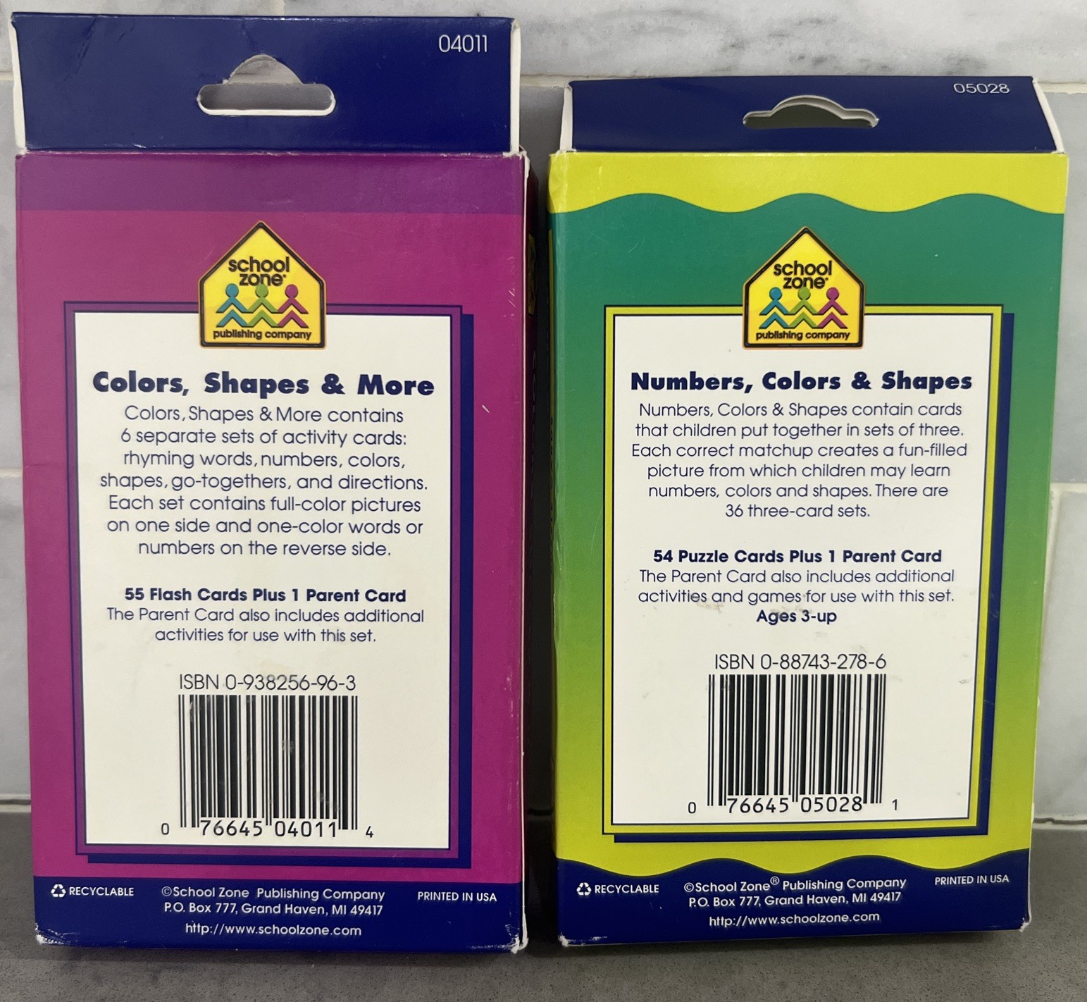 2 School Zone Flash Cards Puzzle Cards, Numbers, Colors, Shapes Letters NEW