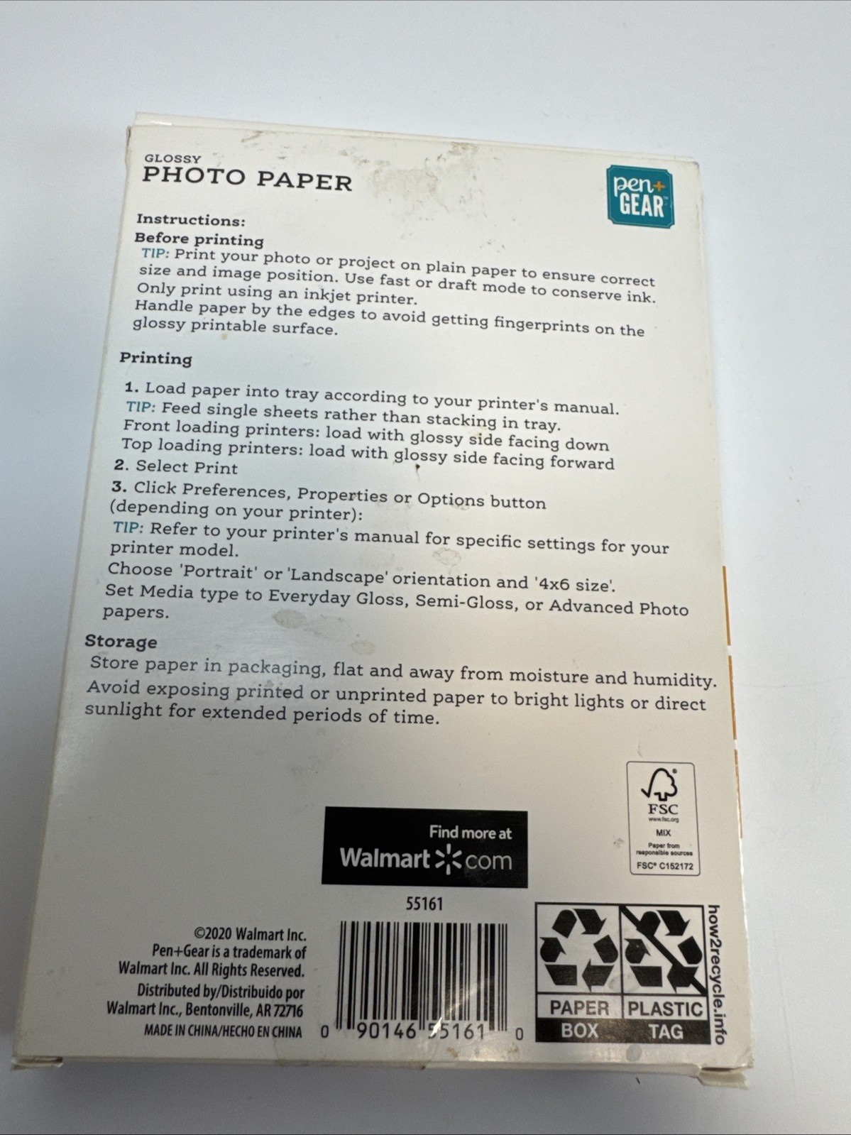 Pen Gear White Glossy Inkjet Photo Paper, 4 x 6, 8.5 Mil, 50 Sheets - NEW
