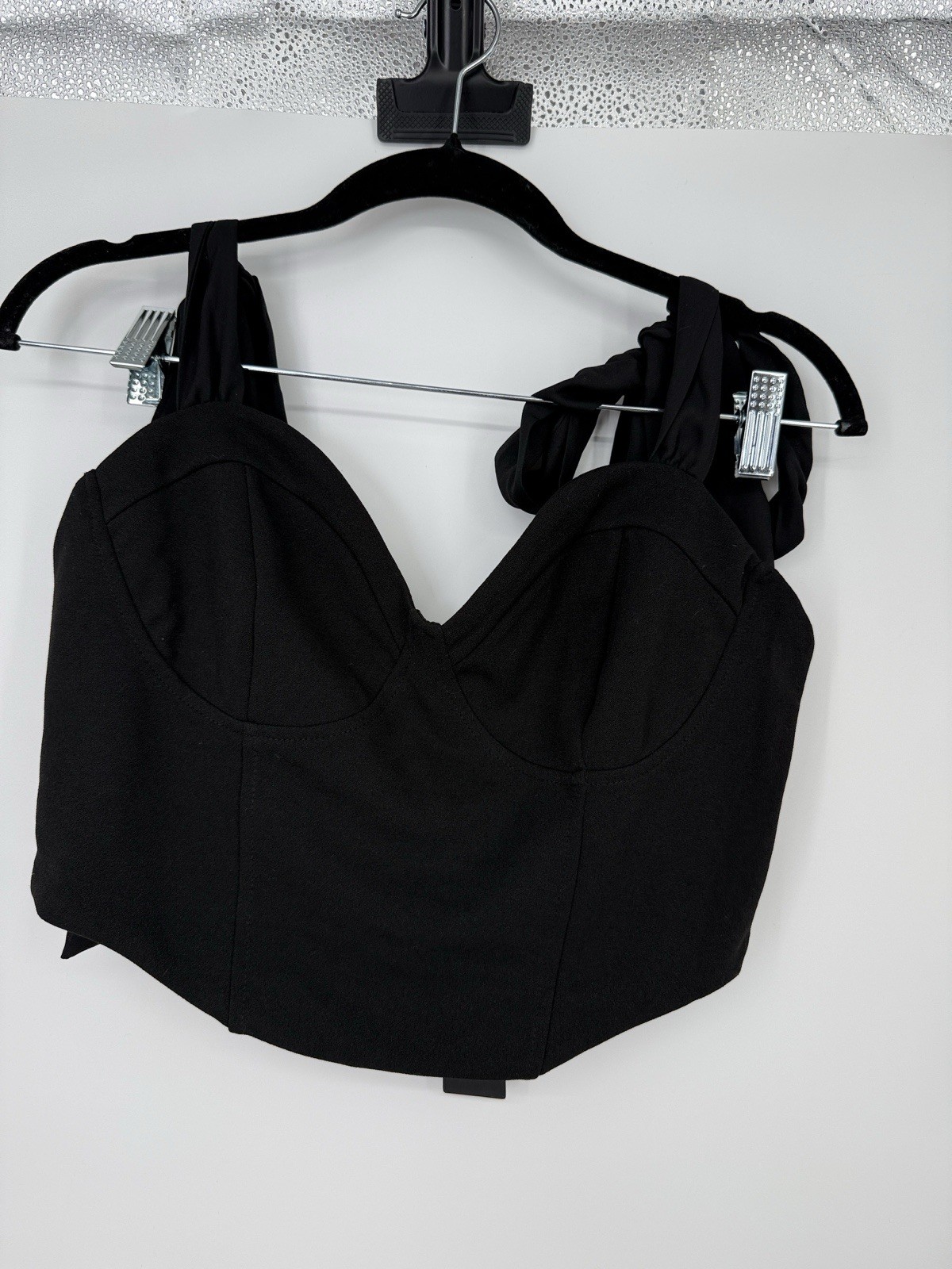 Lulu s Black Bustier Crop Top Adjusted Bow Straps Size Large NWT