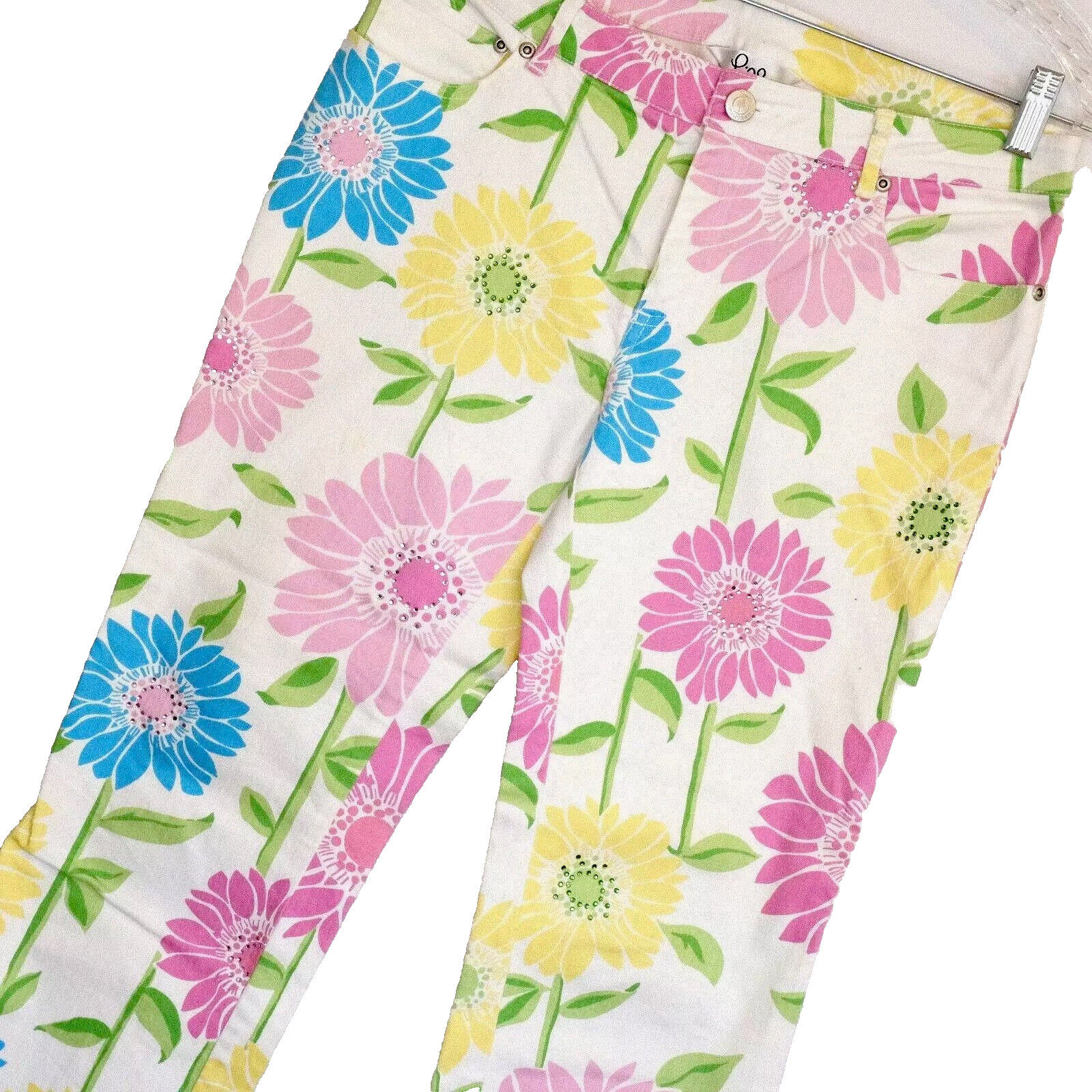 Lilly Pulitzer Floral Crop Pants 4 Vtg White Label Rhinestones Spring Tropical