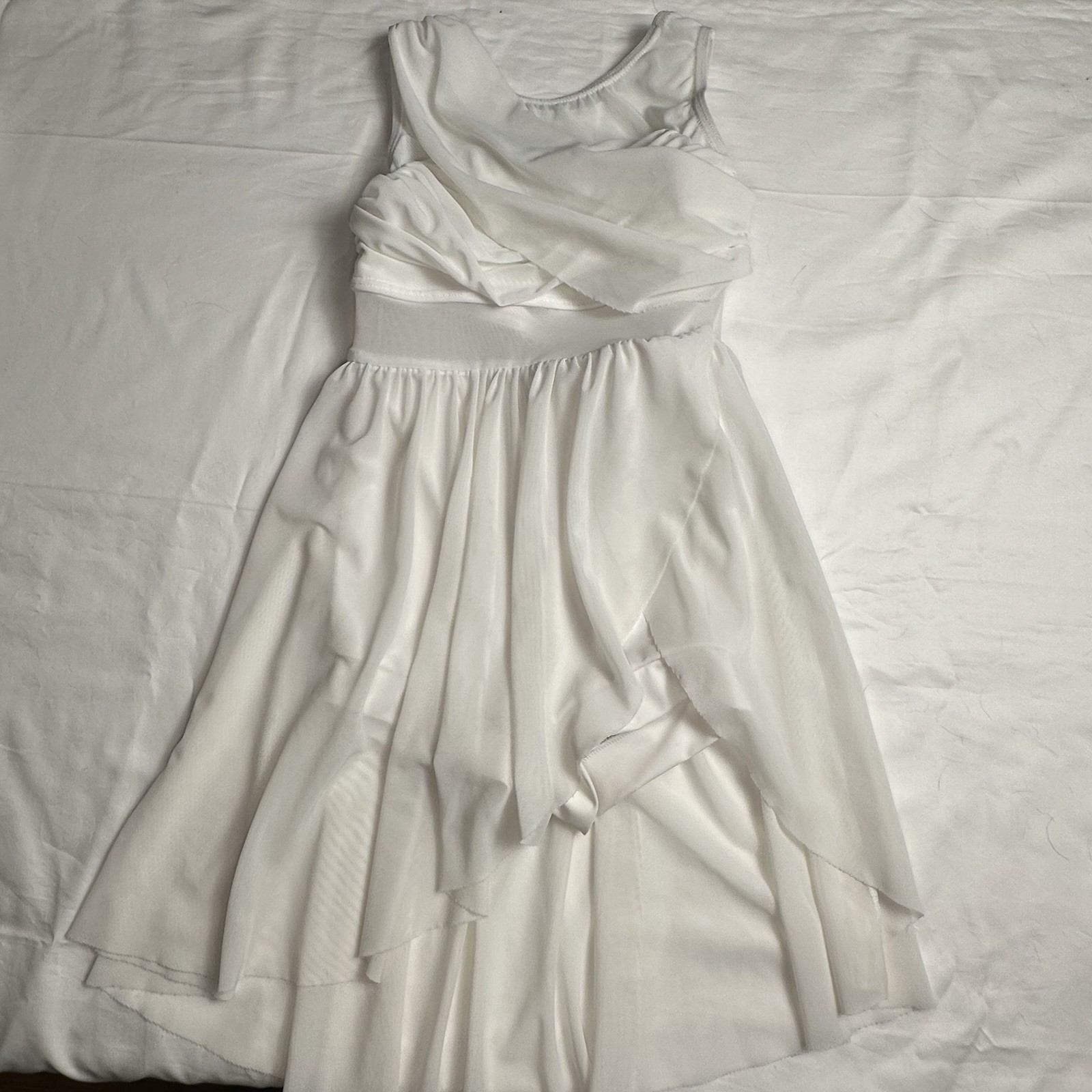 как выглядит Balera White Mesh Wrap Lyrical Dress Dance Costume Intermediate Child IC D8423 фото