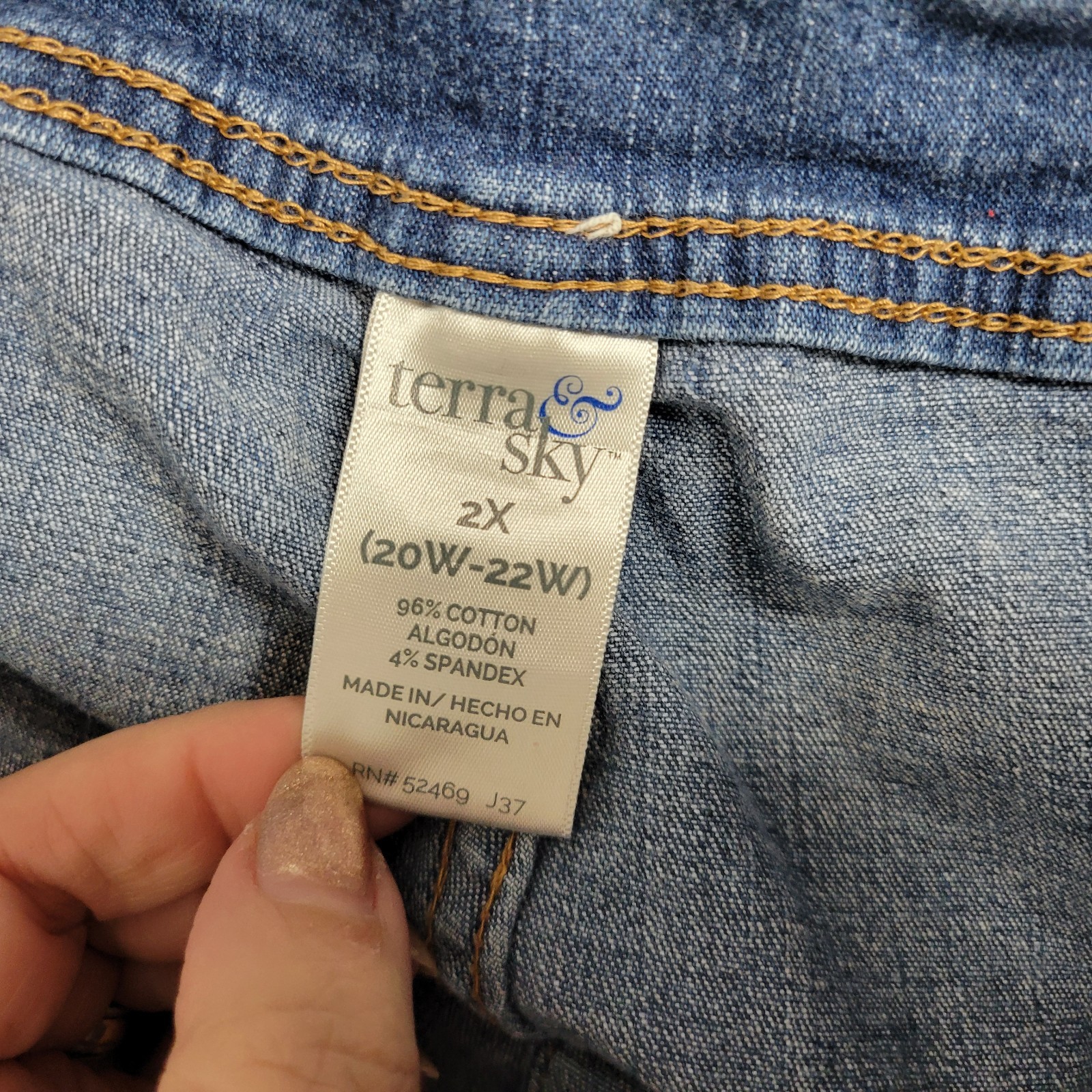 Terra Sky Plus Size 2X Capri Jeans Medium Blue Denim Stretch Elastic Waist