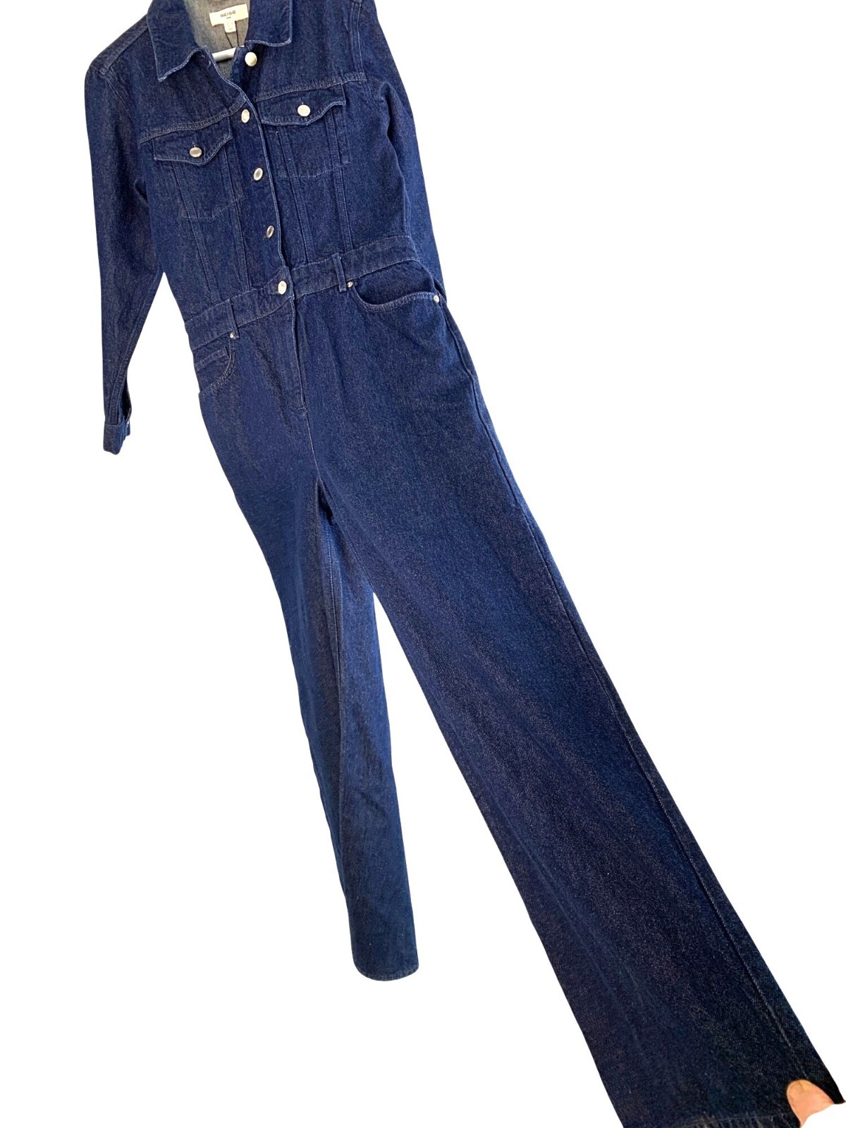 Reiss Frankie Relaxed Wide-Leg Denim Jumpsuit Indigo 6 US 100 Cotton NWT