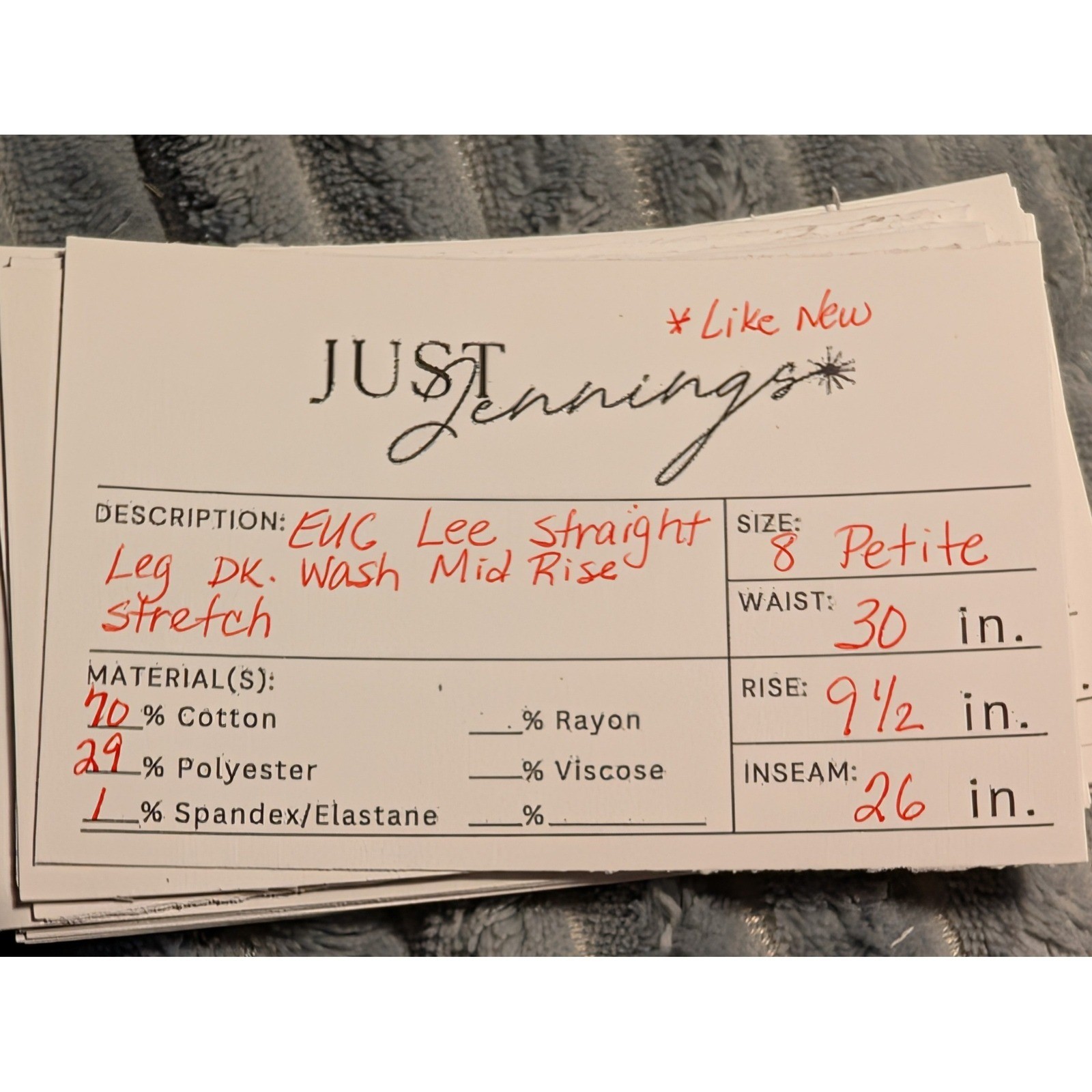 как выглядит Lee Straight Leg Jeans Dark Wash Mid Rise Stretch Denim 8 Petite EUC фото
