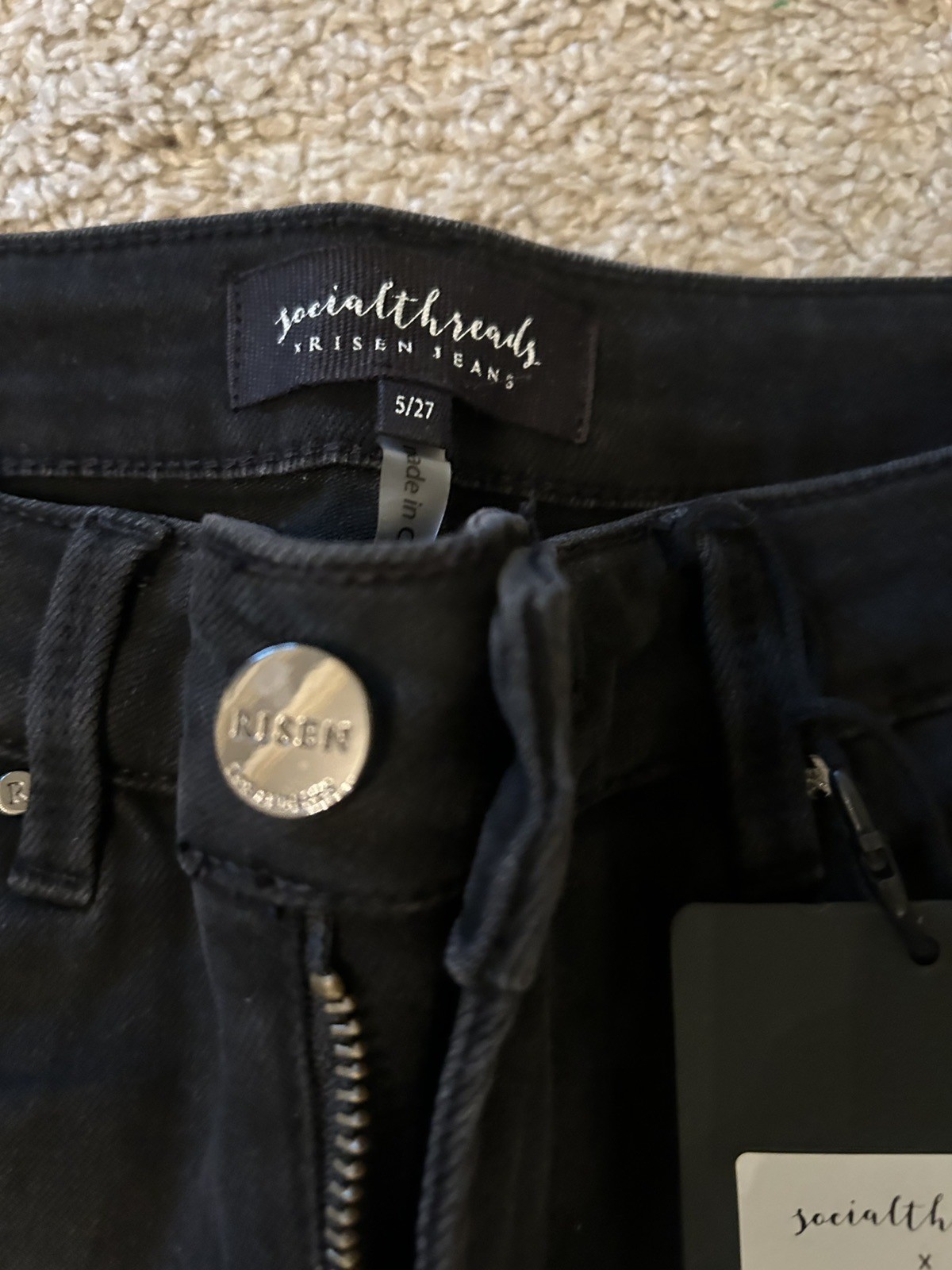 RISEN Women's Size 5 27 Distressed Black Charcoal Denim Jeans Solid 5-Pocket