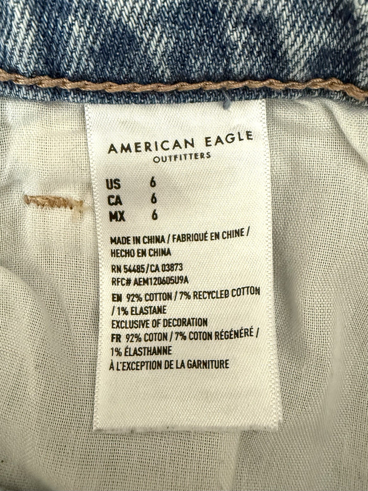 American Eagle 90s Hi-Rise Mini Jean Skirt Size 6 Blue Distressed Cotton