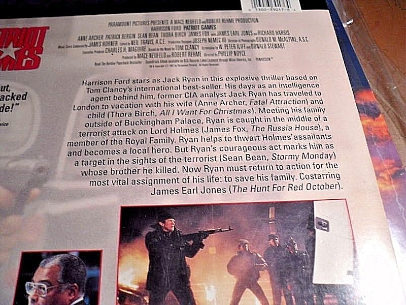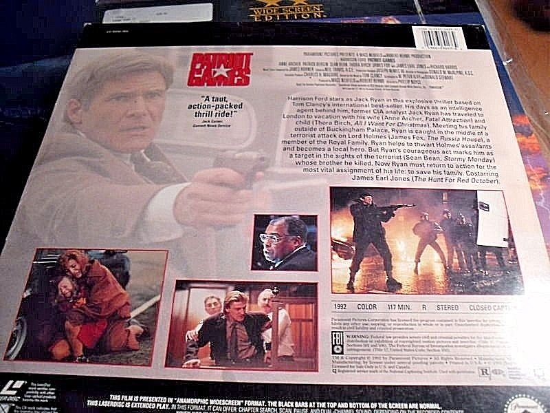 PATRIOT GAMES VINTAGE 1992 LASER DISC WIDESCREEN EDITION. HARRISON FORD.
