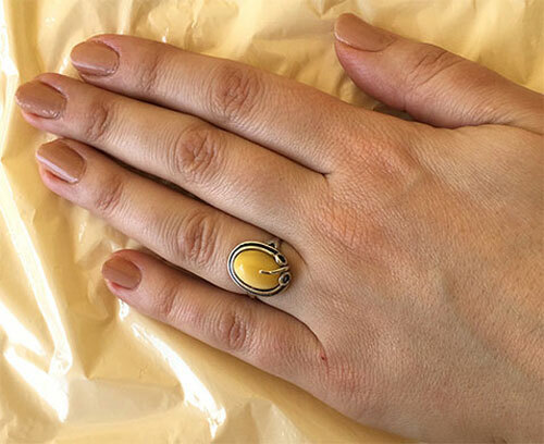 как выглядит BALTIC BUTTERSCOTCH GREEN or HONEY AMBER STERLING SILVER HANDMADE RING фото