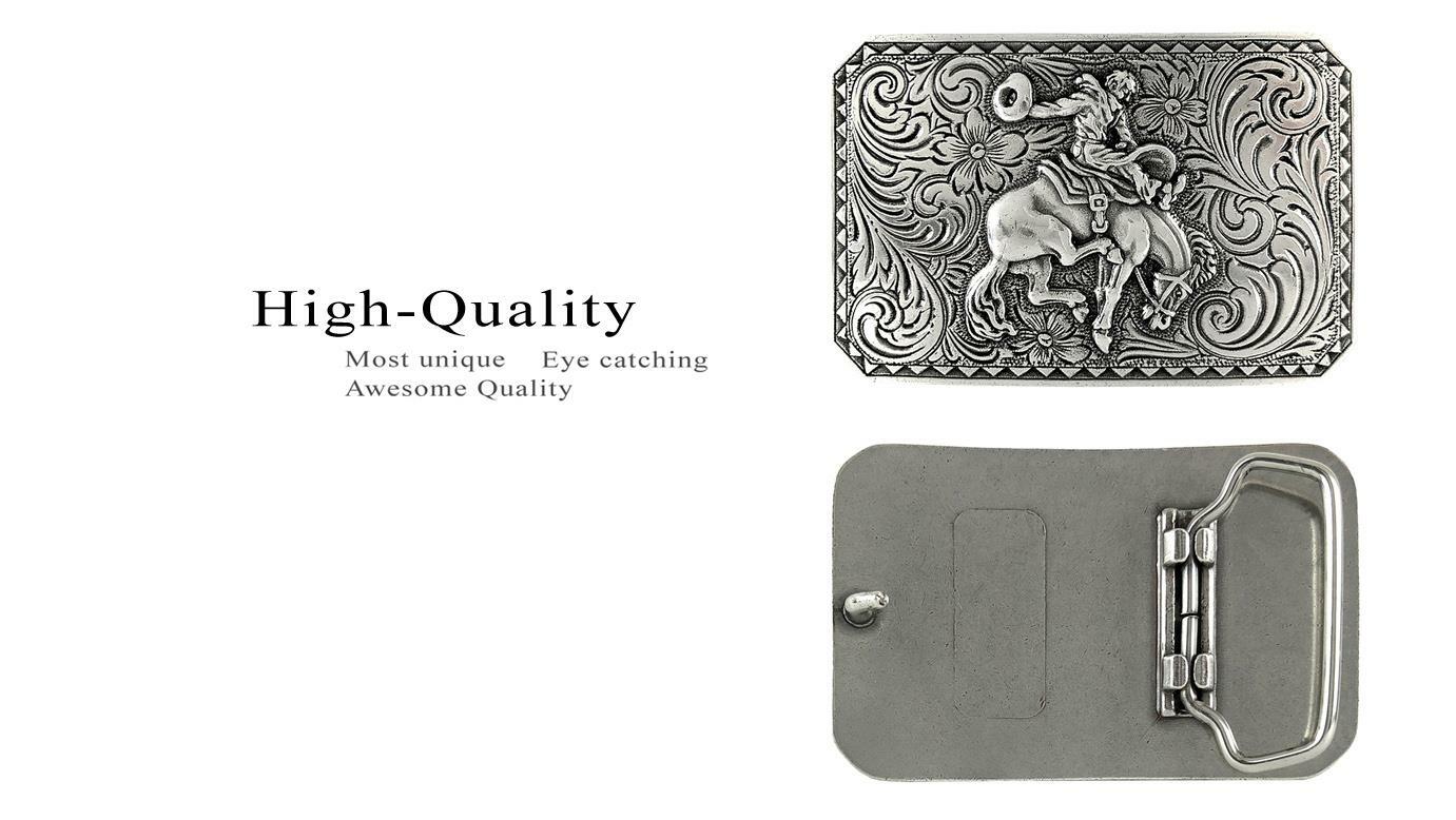 как выглядит Antique Silver Bronco Rider Cowboy Belt Buckle Fits 1-1/2" 38mm Wide Belt фото