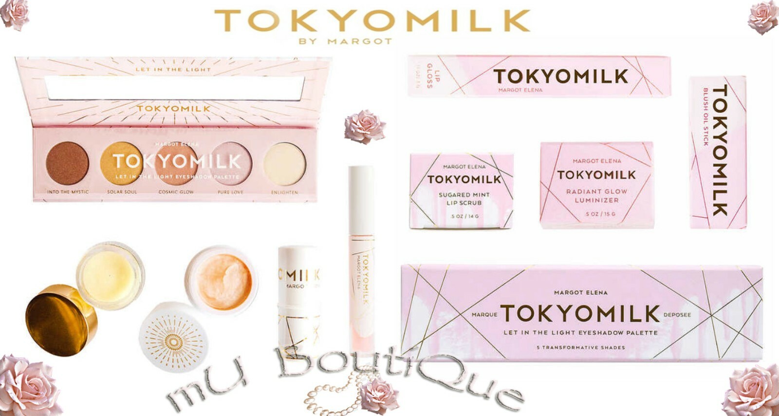 TOKYOMILK COSMETIC 5 PC EYESHADOW LIP GLOSS BLUSH STICK LIP SCRUB LUMINIZER SET