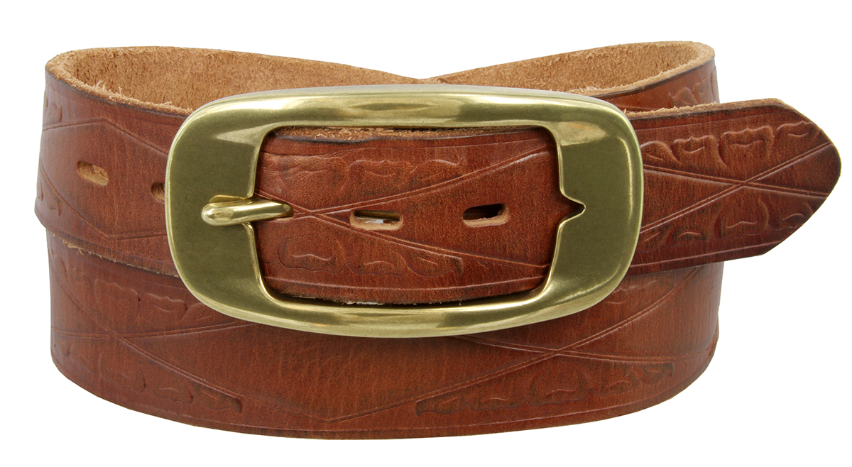 Oval Buckle Full Grain Diamond Tooled Leather Casual Belt 1-1/2 Wide, Tan
