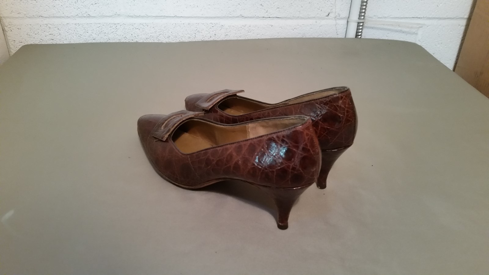 как выглядит vintage alligator with buckle womens shoes pumps size 6 1/2 B фото