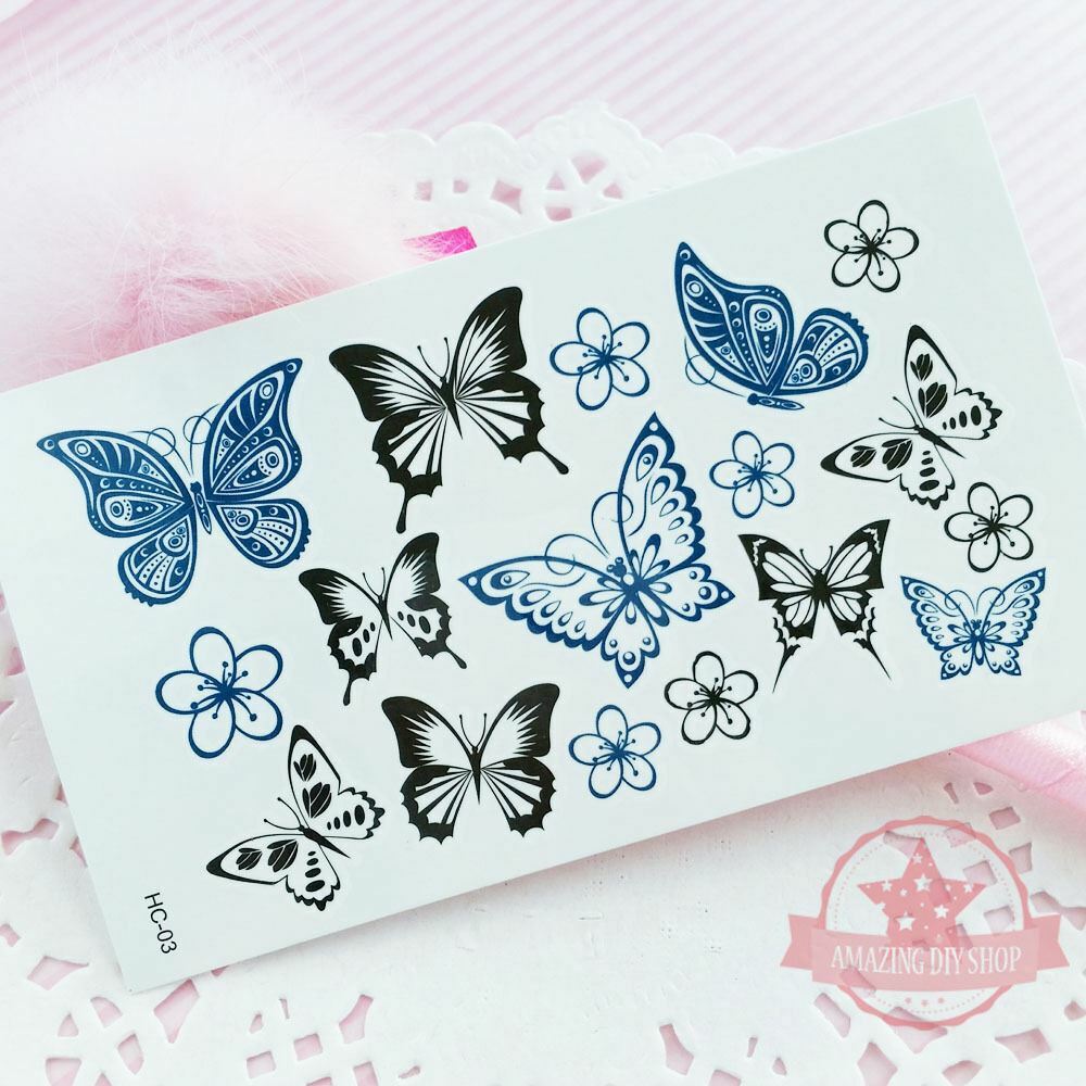 Wholesale 30 pcs Bufferfly Flowers 17 Body Hand Tattoos Black Blue Temporary