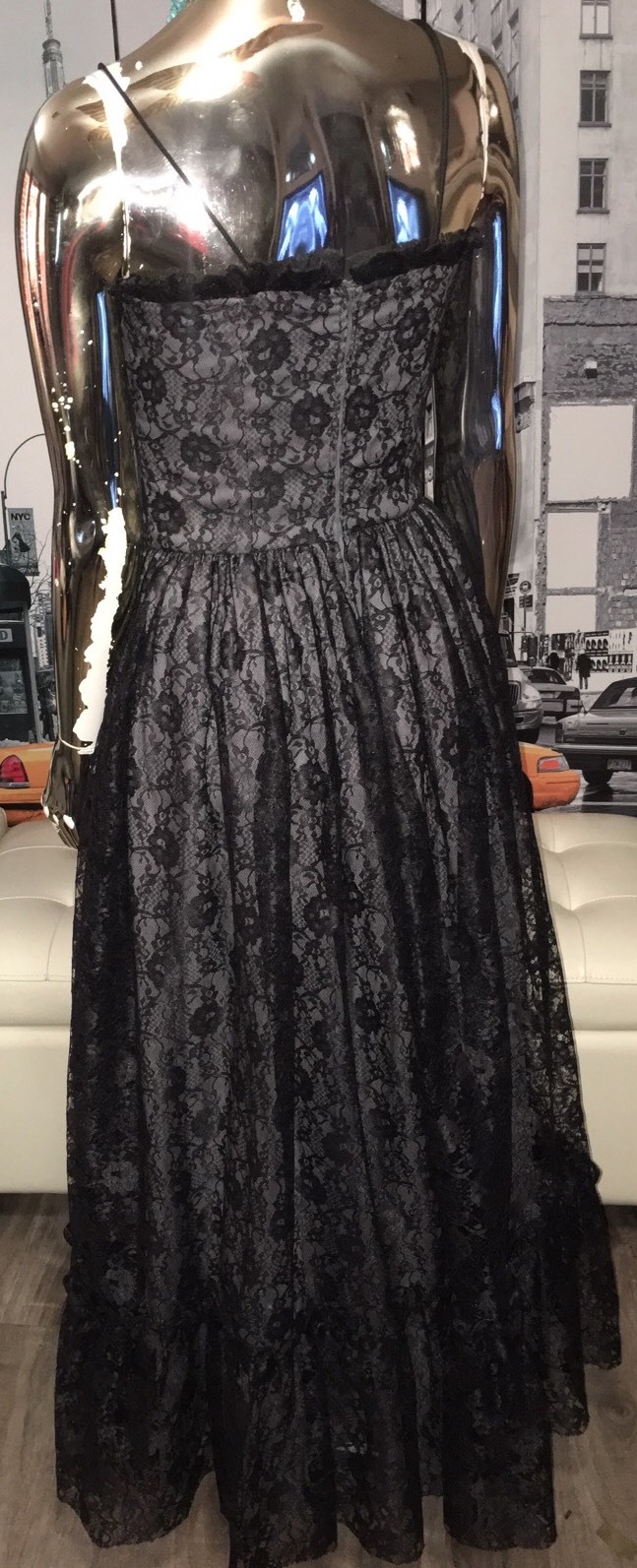 как выглядит Rare Vintage Rockabilly Sweetheart Bodice Black All Lace Full Length Dress фото