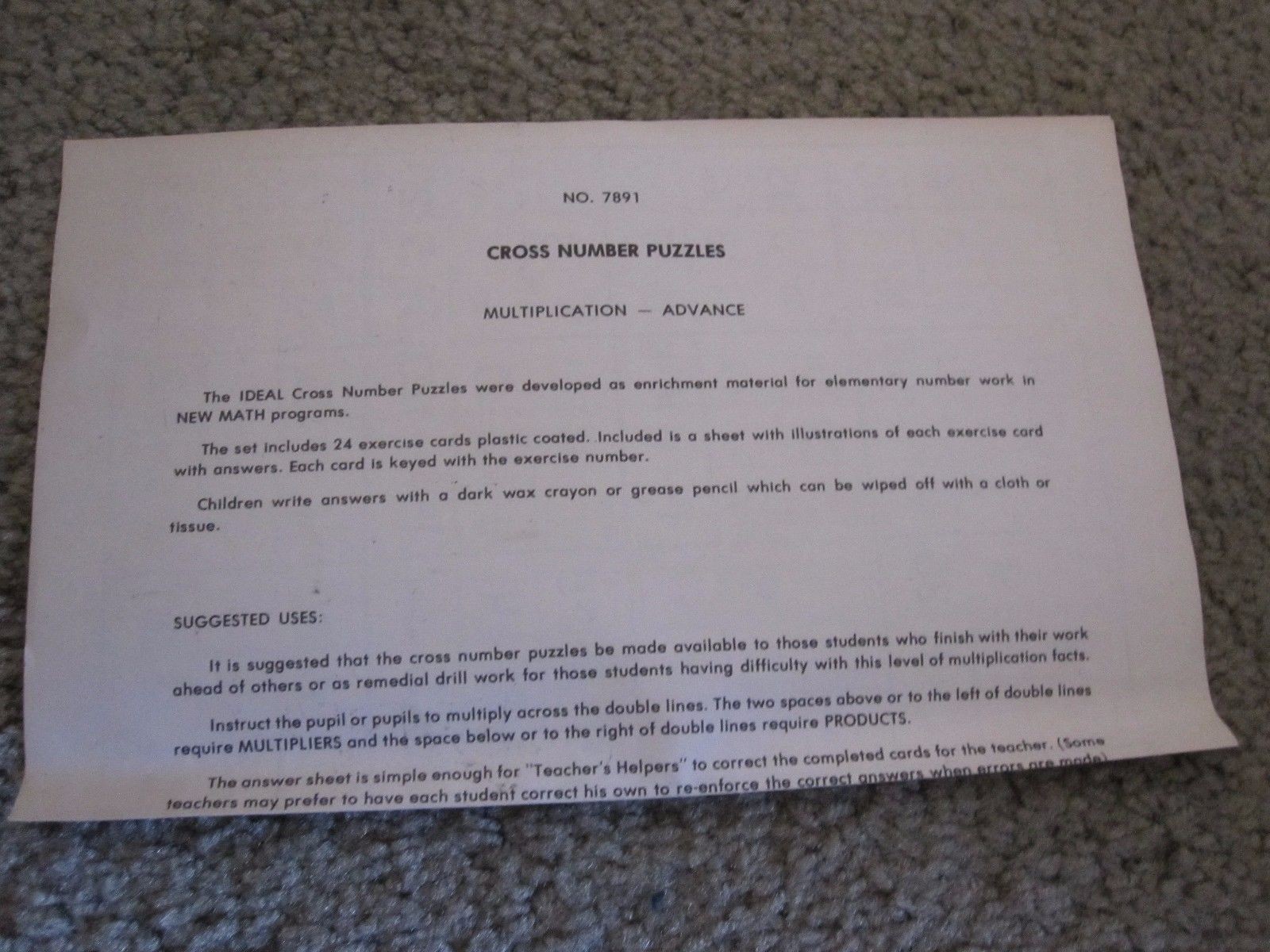 Vintage Ideal School Supply Company Cross Number Puzzle No.7891 Advanced