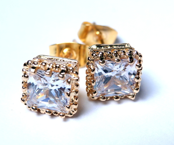 как выглядит Royal Crown Set Gold Princess-Cut 6mm 7mm 8mm Cubic Zirconia Stud Earrings фото