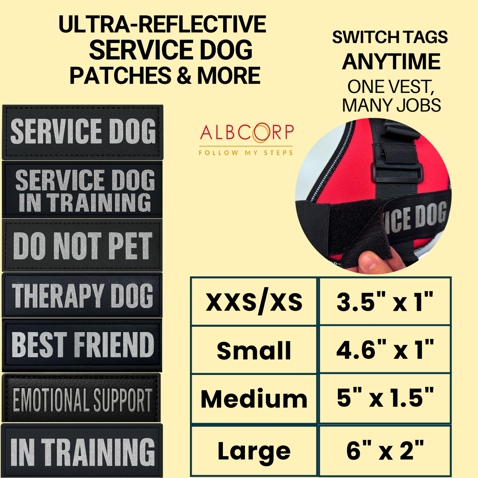 Reflective SERVICE DOG Patches,IN TRAINING,DO NOT PET, EMOTIONAL SUPPORT,THERAPY