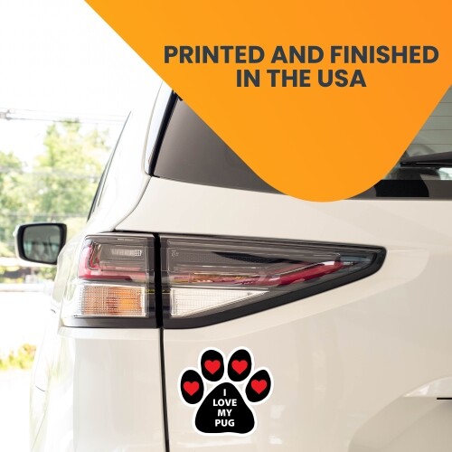 I Love My Pug Pawprint Car Magnet By Magnet Me Up 5" Paw Print Auto Truck Decal