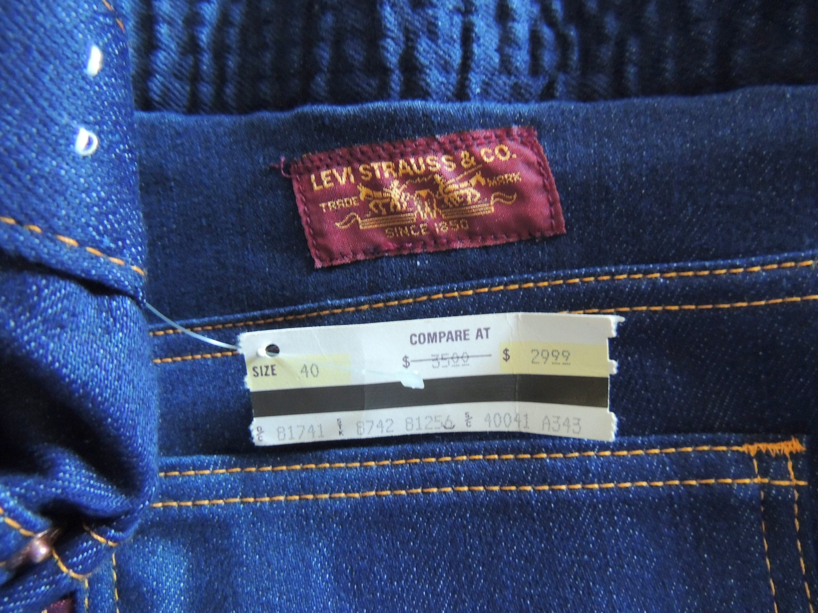 как выглядит NWT VINTAGE 80s LEVIS BLUE DENIM STRETCH JEANS SIZE 42X32 фото