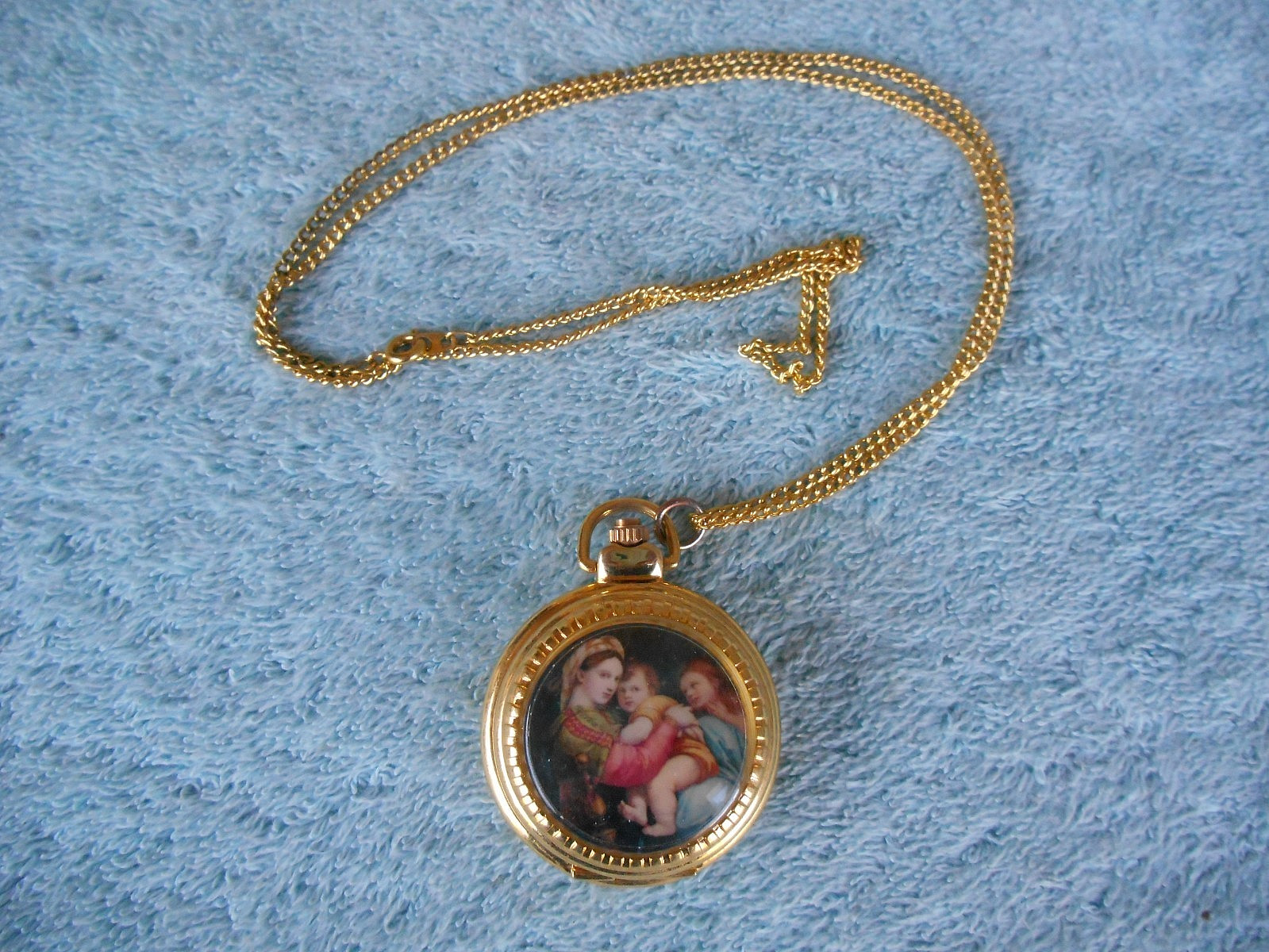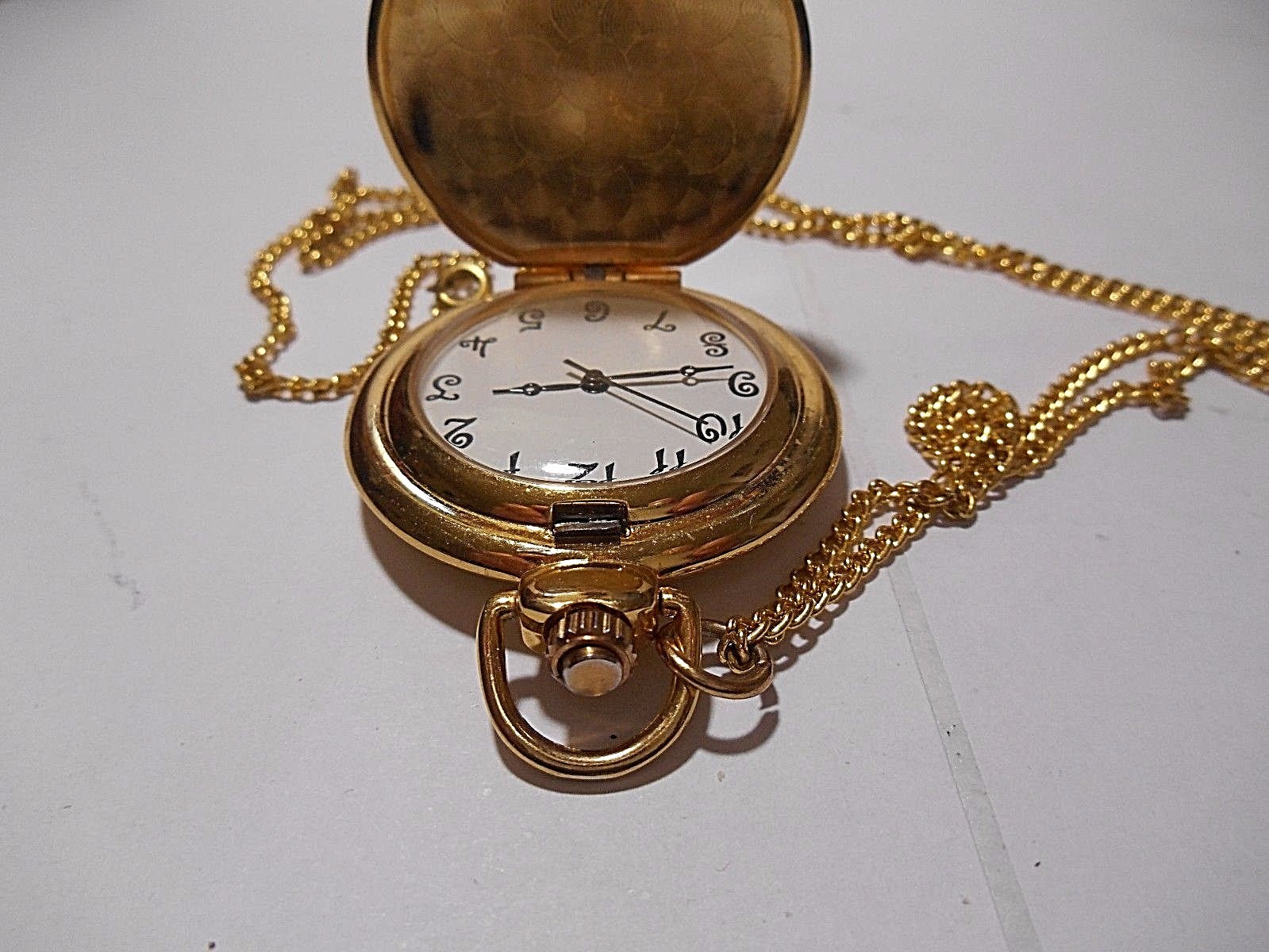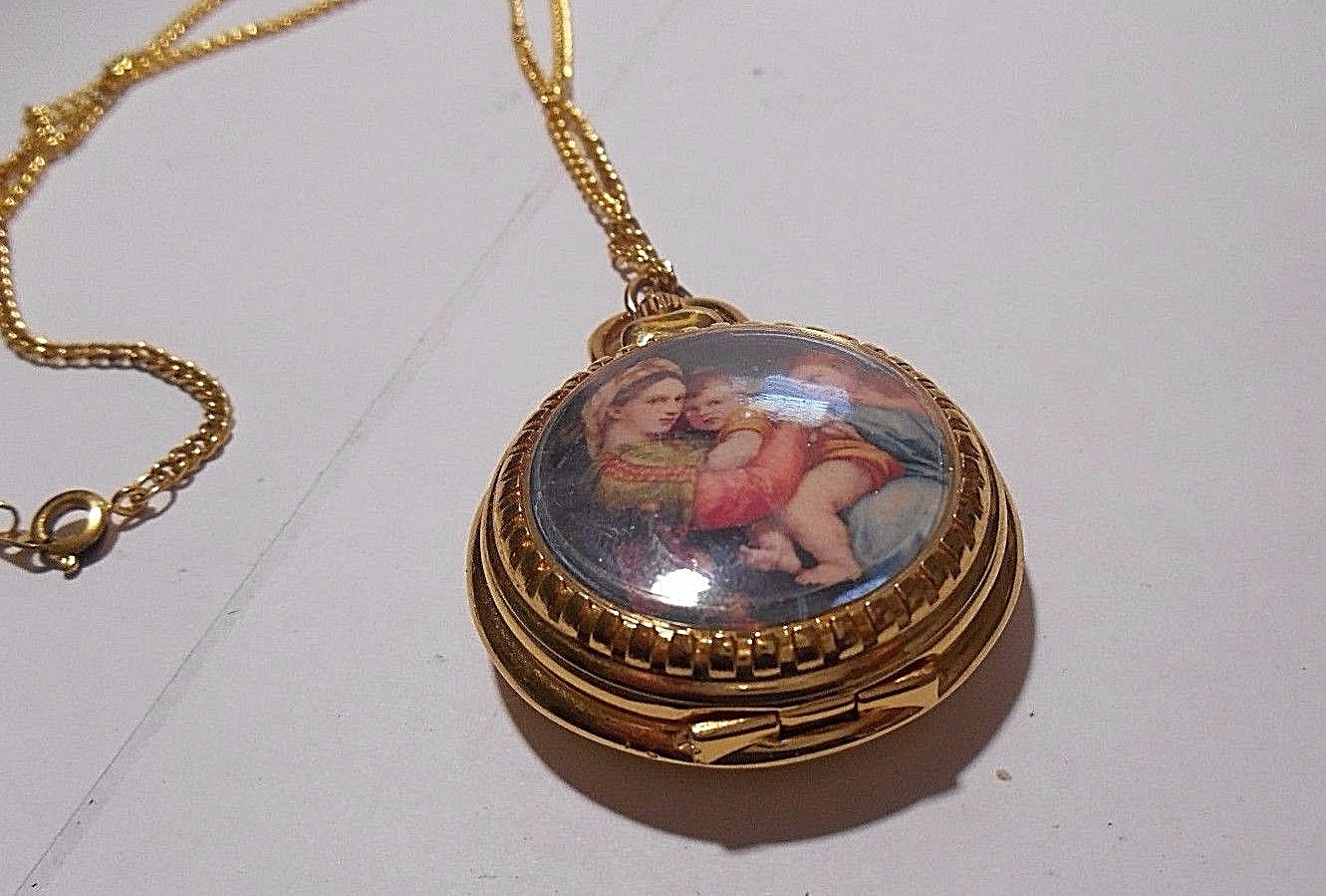 как выглядит GOLD TONE 1-1/2" QUARTZ POCKET WATCH NECKLACE WITH ART. NEEDS NEW BATTERY фото