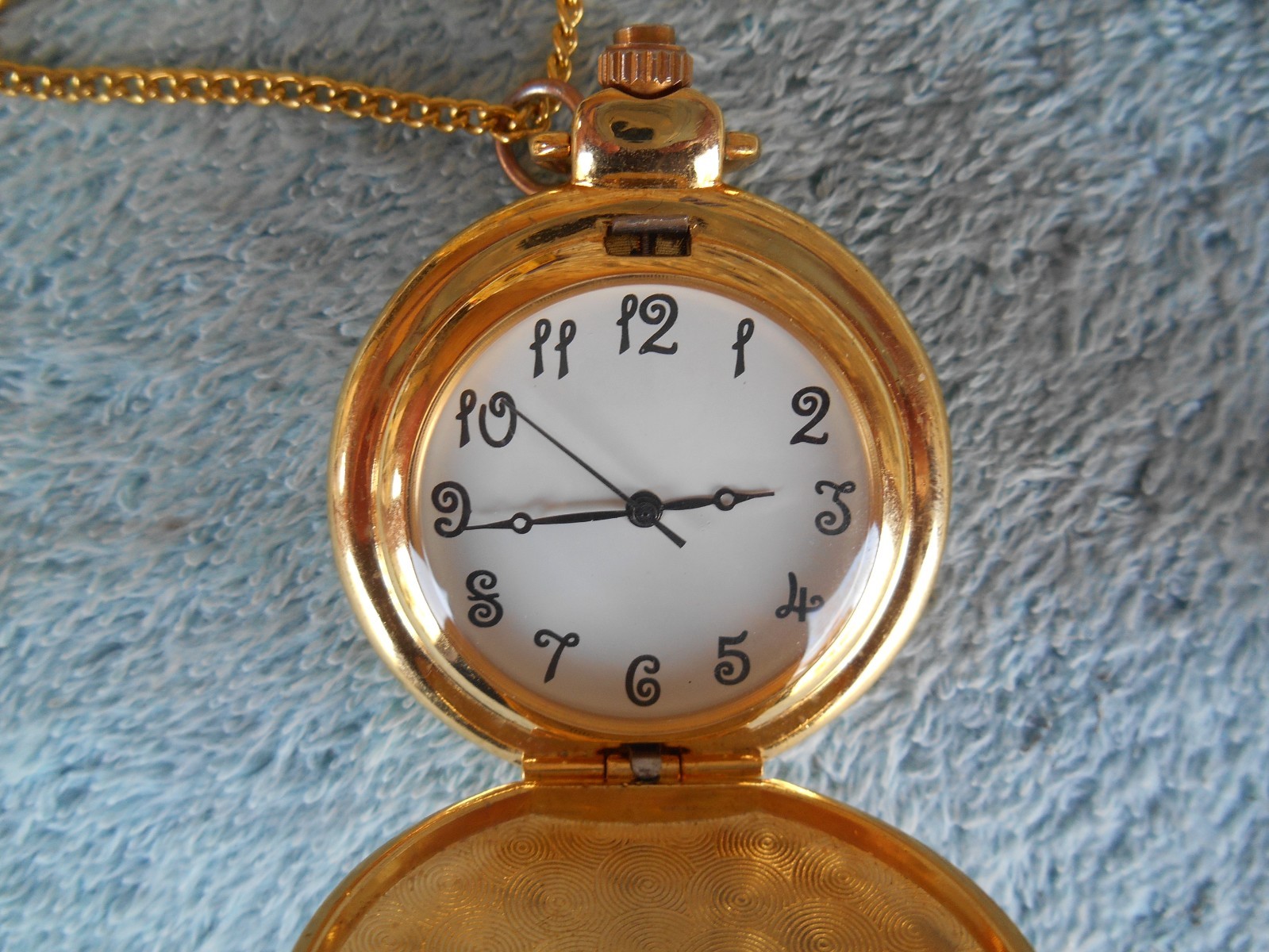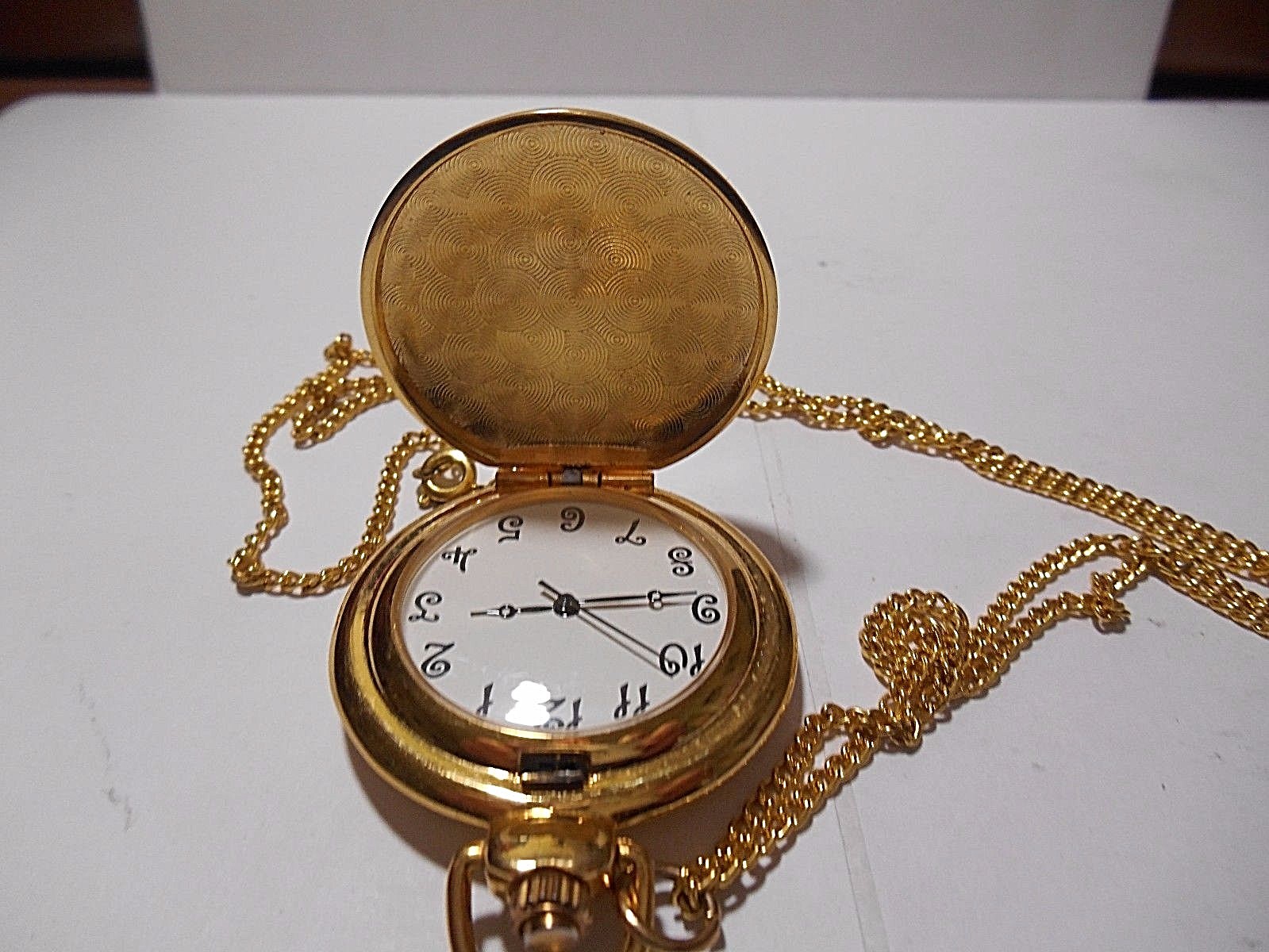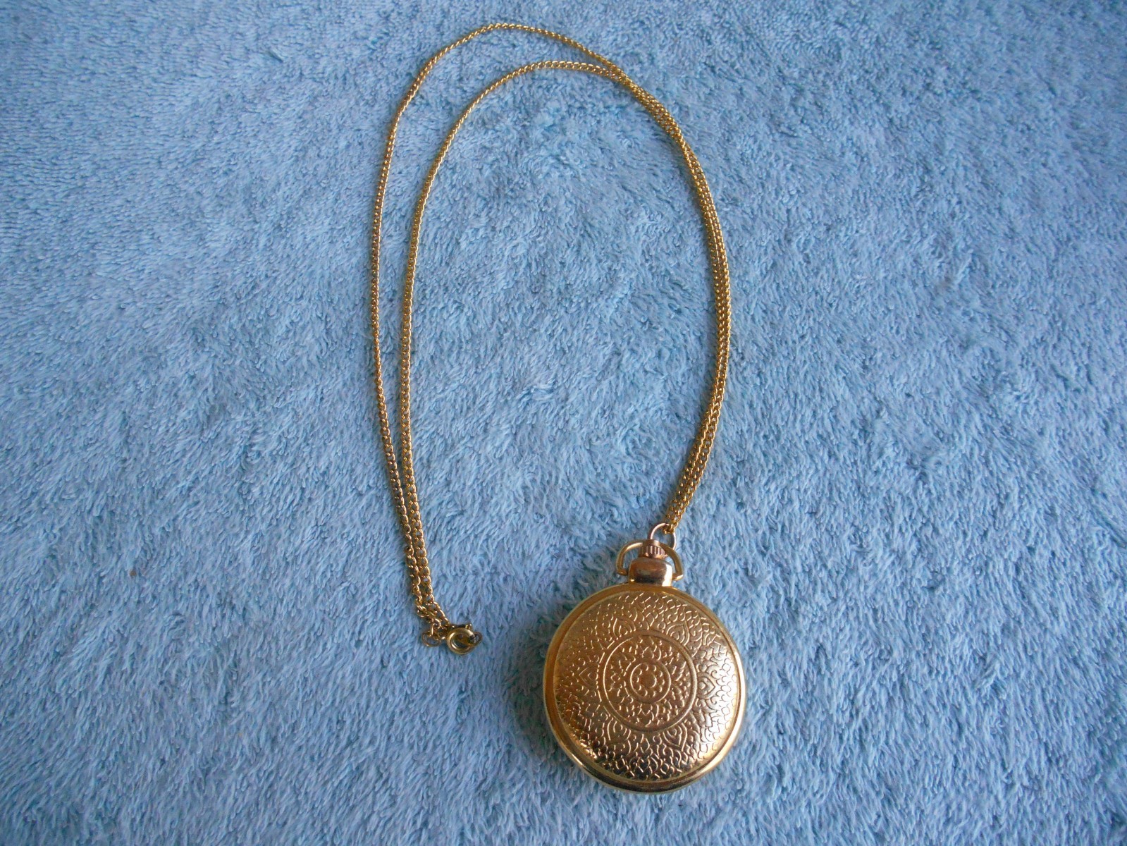 как выглядит GOLD TONE 1-1/2" QUARTZ POCKET WATCH NECKLACE WITH ART. NEEDS NEW BATTERY фото