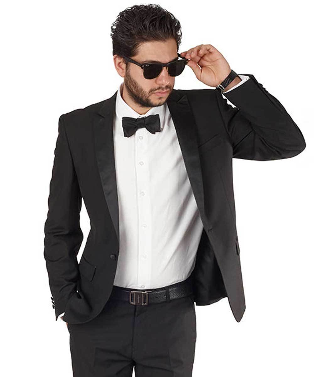 как выглядит Black Peak Lapel Dinner Jacket Tuxedo Slim Fit 1 Button Blazer By AZAR MAN фото