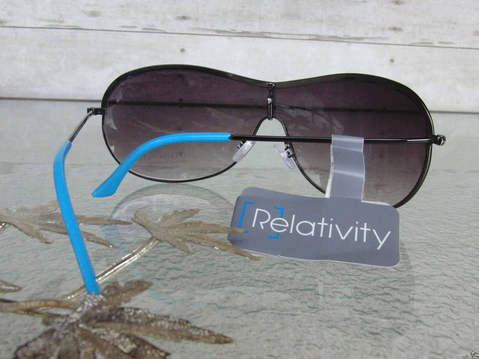 как выглядит Vintage Ladies Blue Gun Metal 100 UV Protection Sunglasses By Relativity New фото