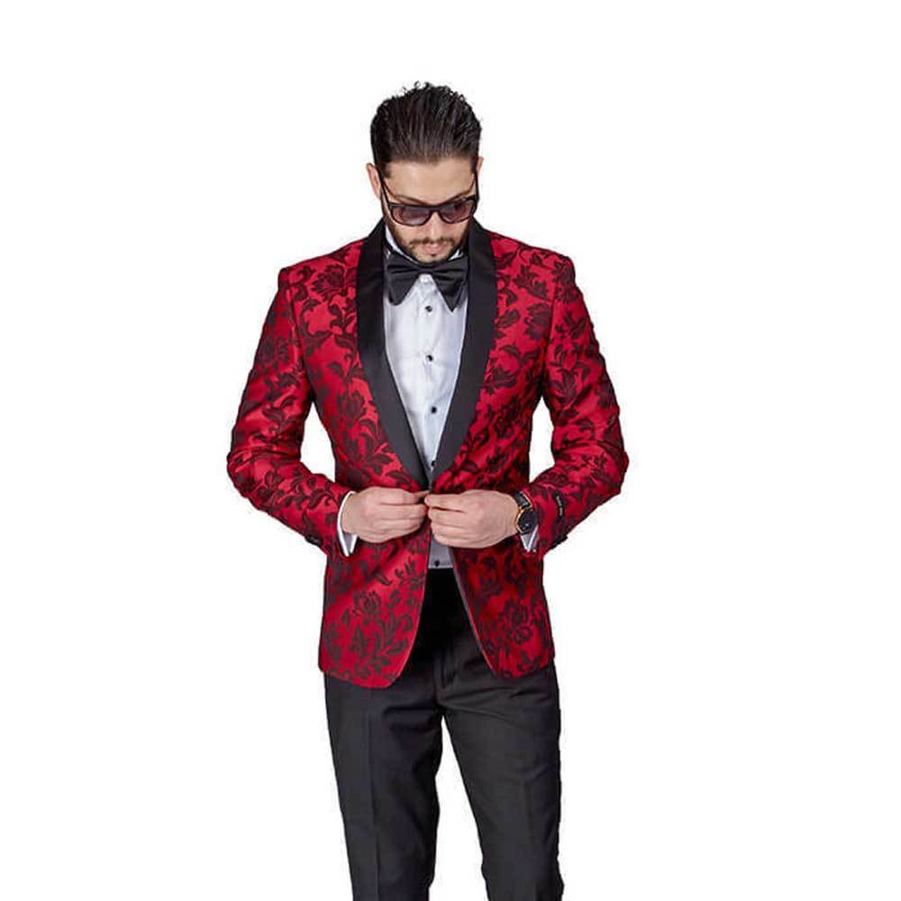 как выглядит Red Floral Shawl Satin Lapel Jacket Only Tuxedo Slim Fit 1 Button Blazer AZAR фото