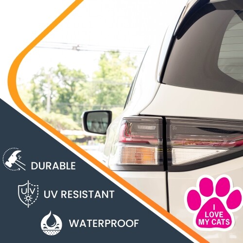 • I Love My Cats Pawprint Car Magnet - 5" Pink Paw Print Auto Truck Fridge Magnet