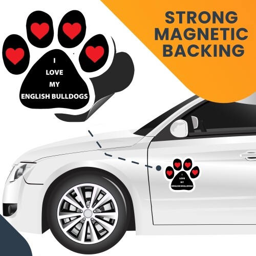 I Love My English Bulldogs Pawprint Car Magnet 5 Paw Print