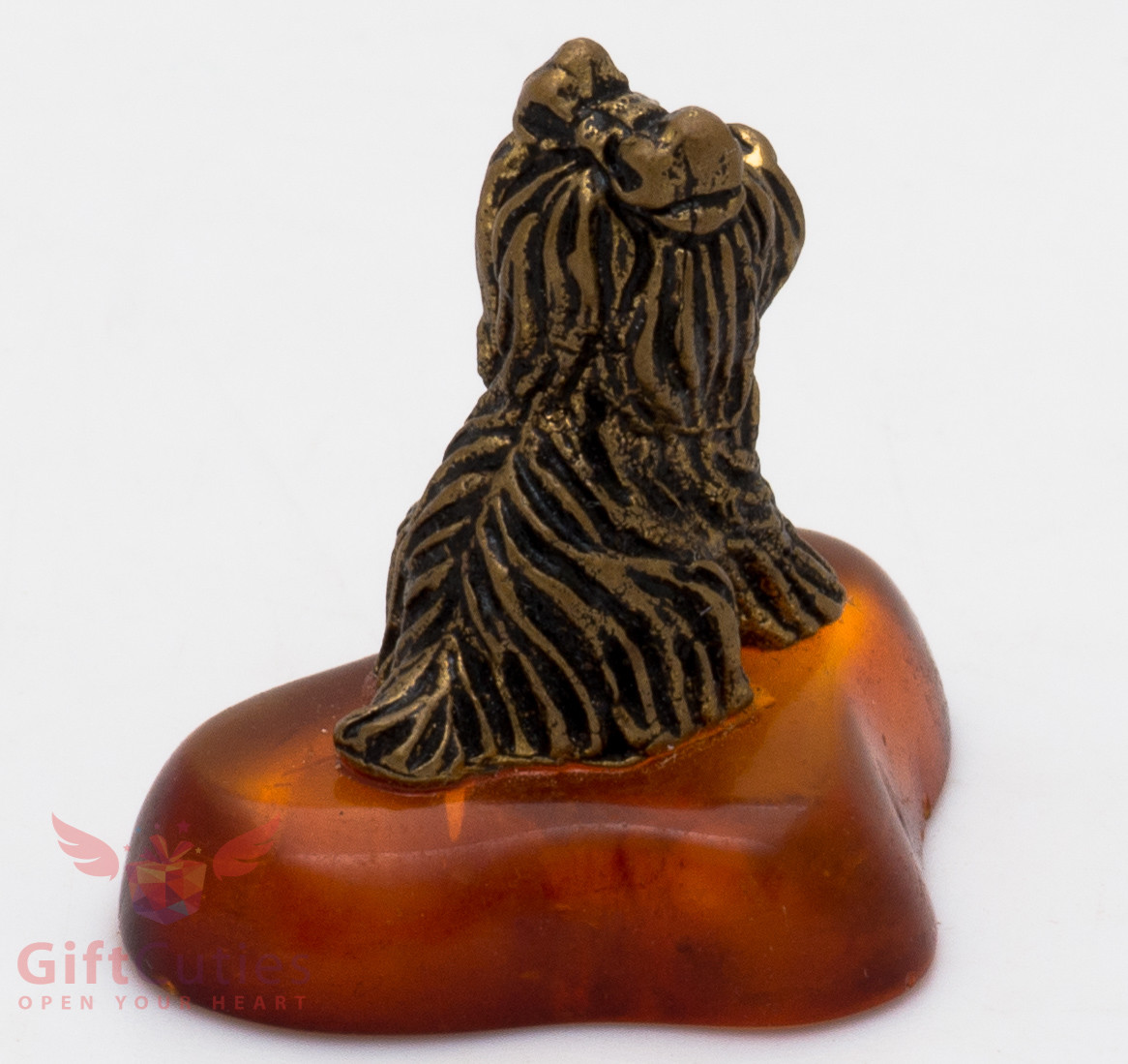 Solid Brass Amber Figurine Yorkshire Shaggy Terrier dog