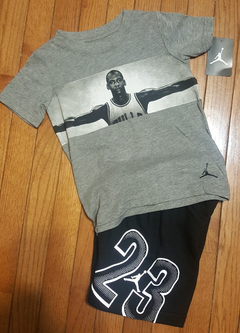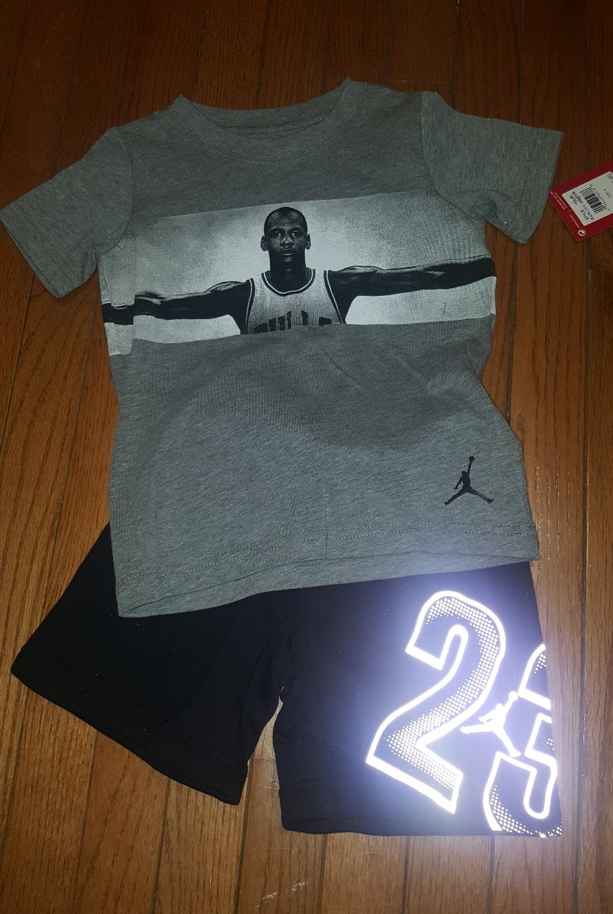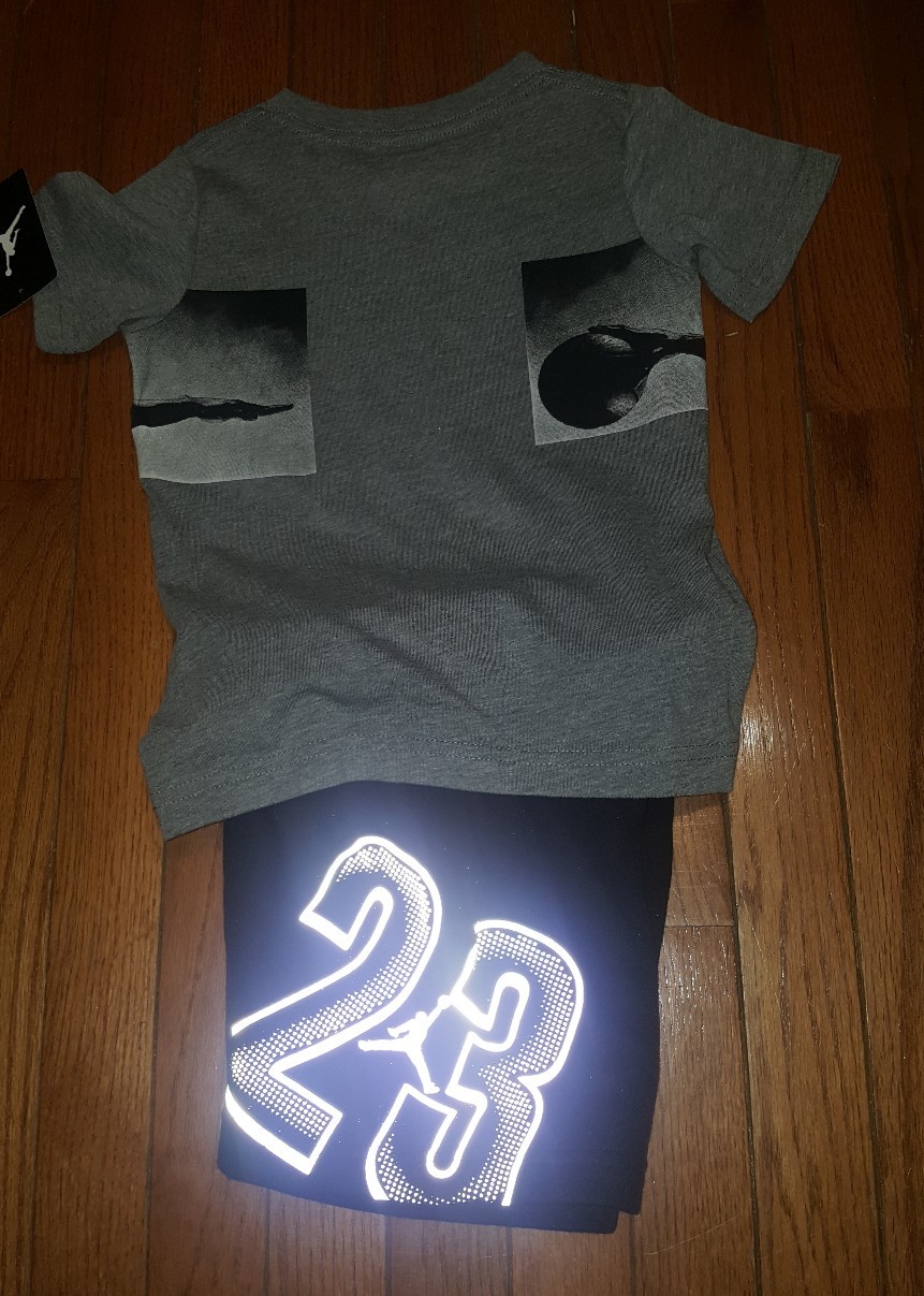 как выглядит NWT Nike Air Jordan 2pc shirt short outfit set, Reflect Blk/ Gray XS 4 фото