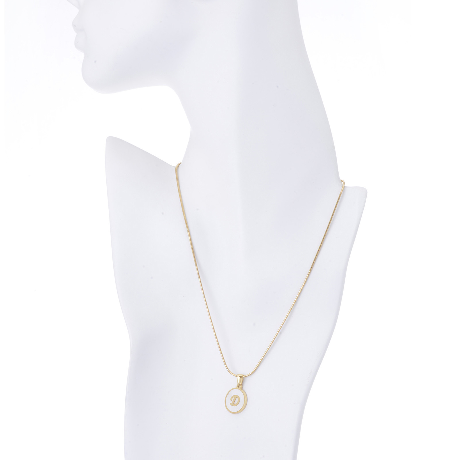 как выглядит Womens Stainless Steel Gold D Initial Letter Medallion 16" Chain Necklace фото
