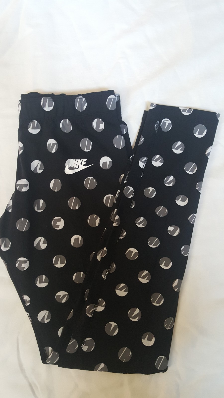 как выглядит Nike Sportswear Girls Black/Grey Polka Dot Cotton Leggings 932113-010 L/XL фото