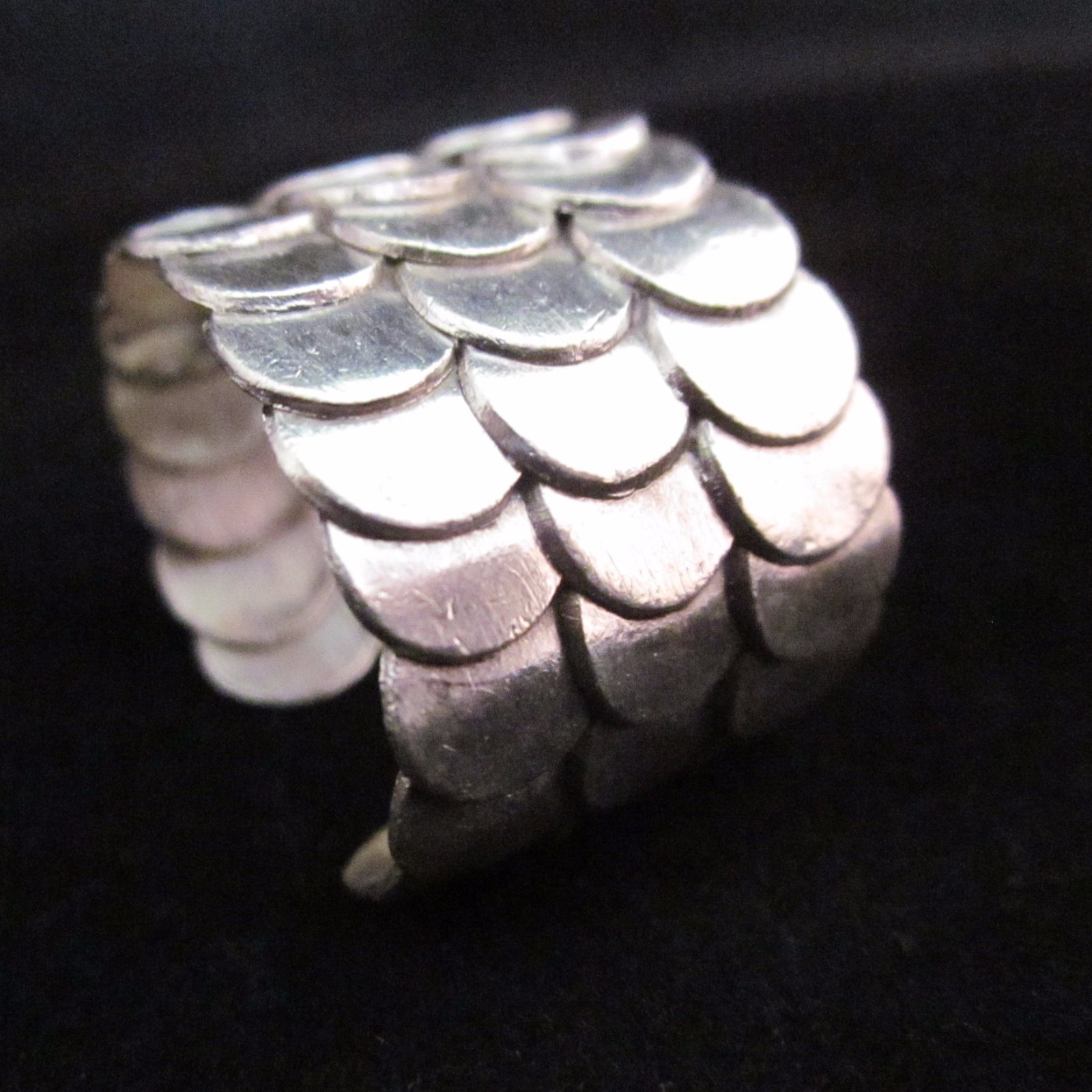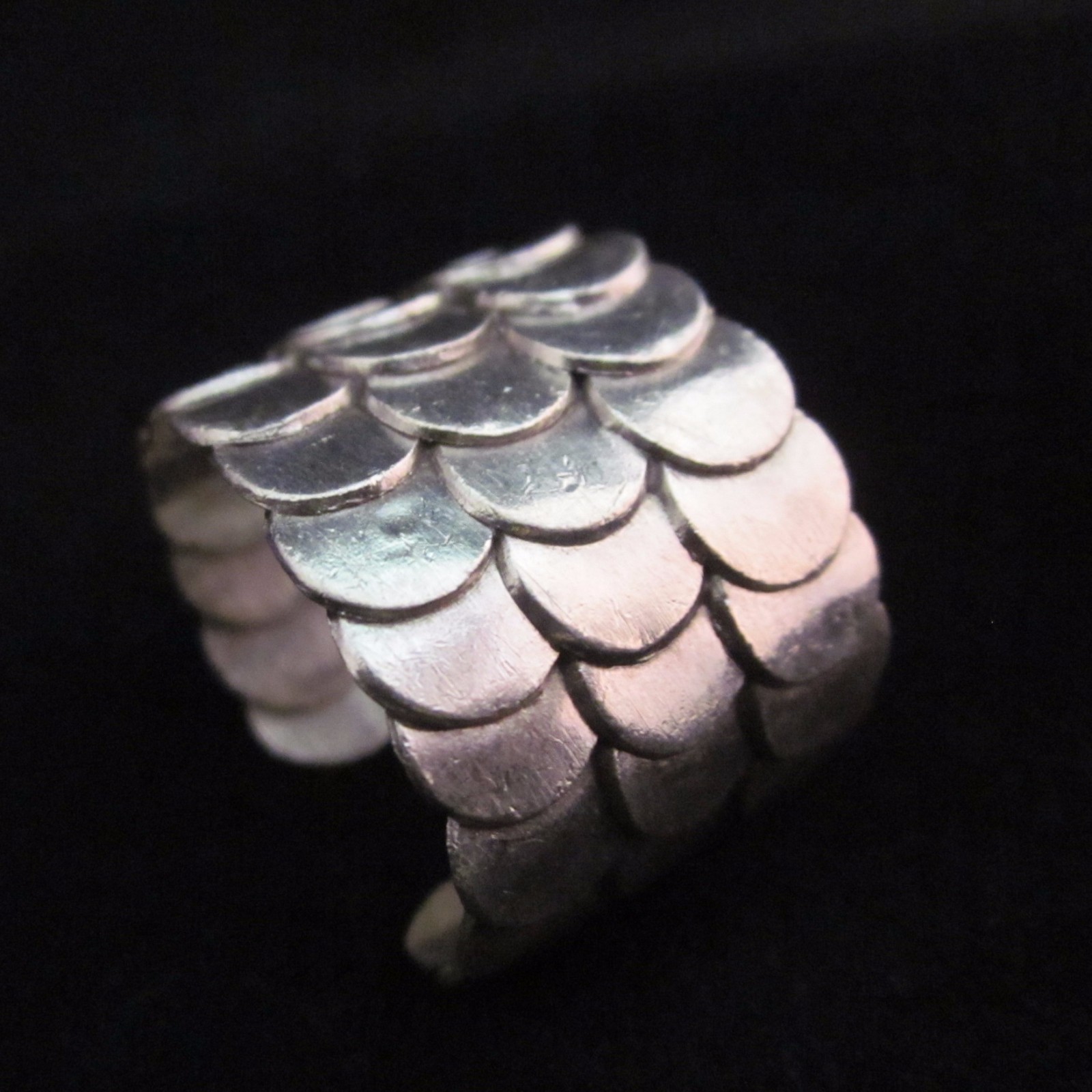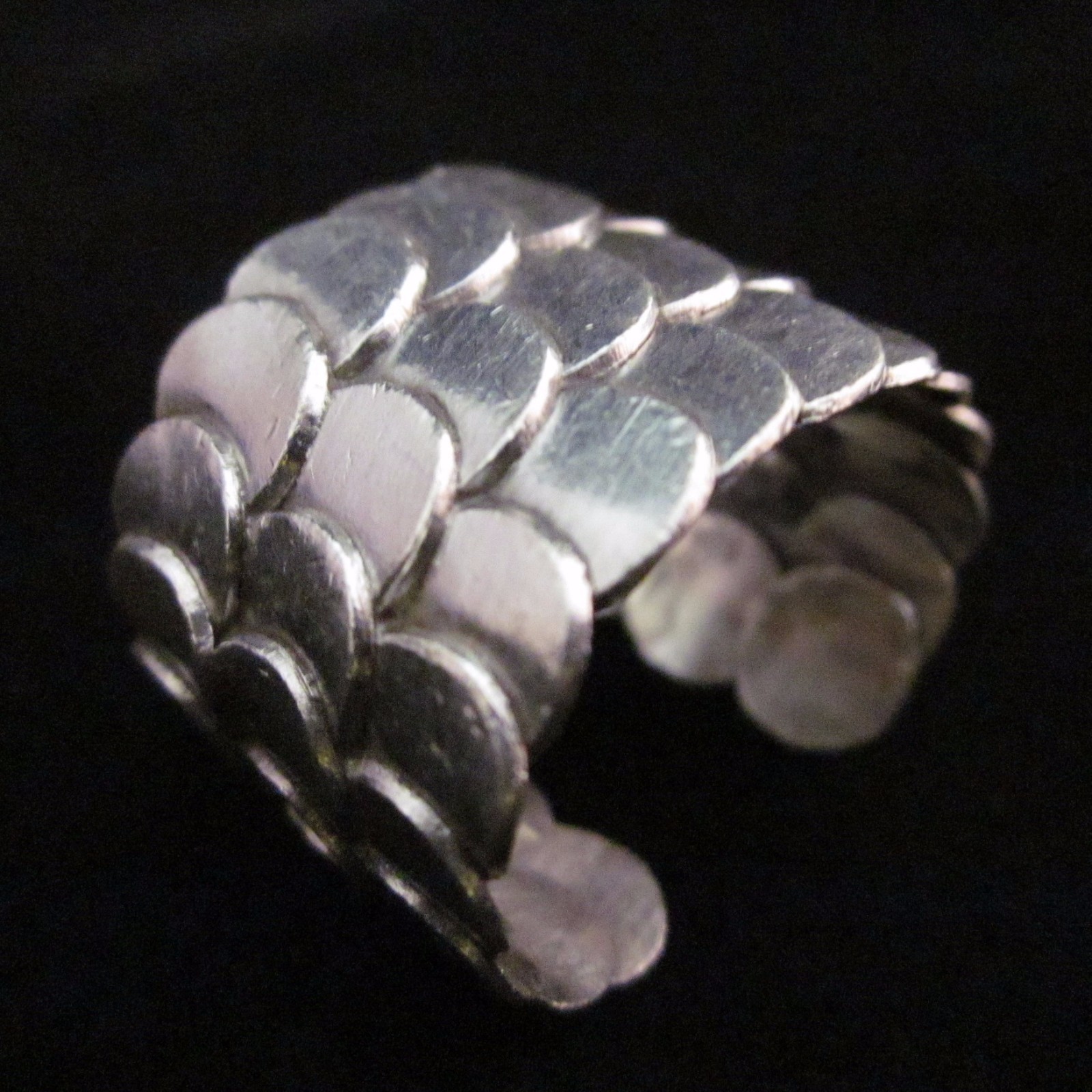 Fine Silver Rings Jewelry Ethno Anello Argento Adjustable 3 Layers Scales 4608