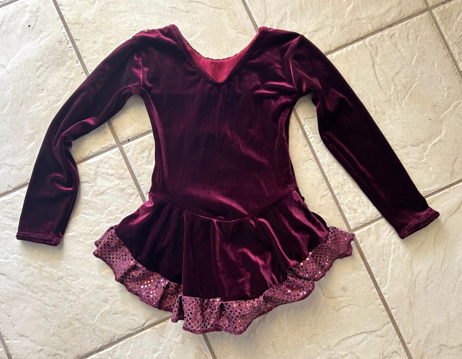 NEW Girl Merlot PLUM Sequin VELVET Competition TWIRLING Figure ICE SKATING Dress