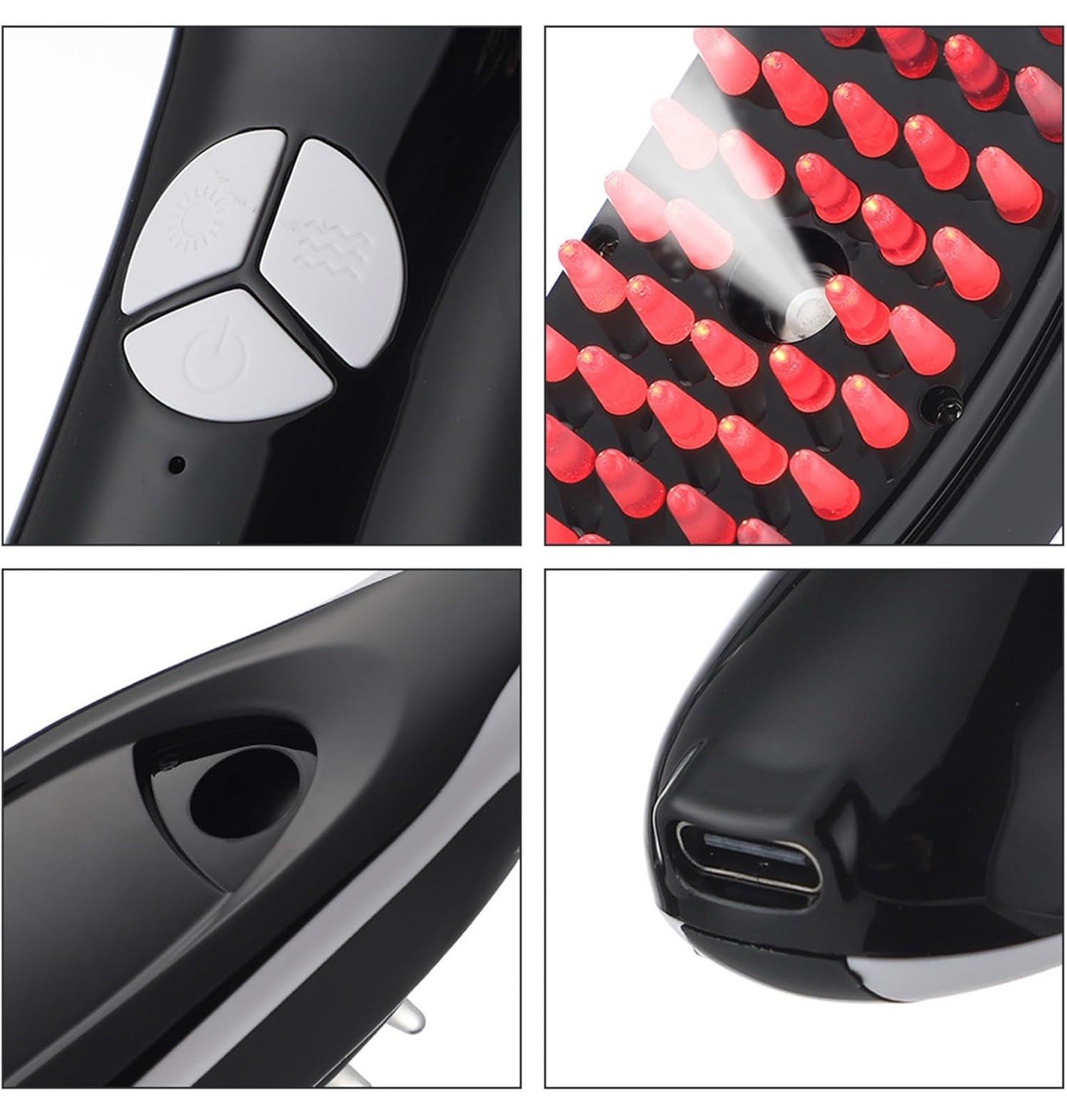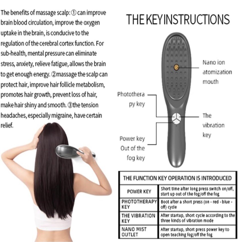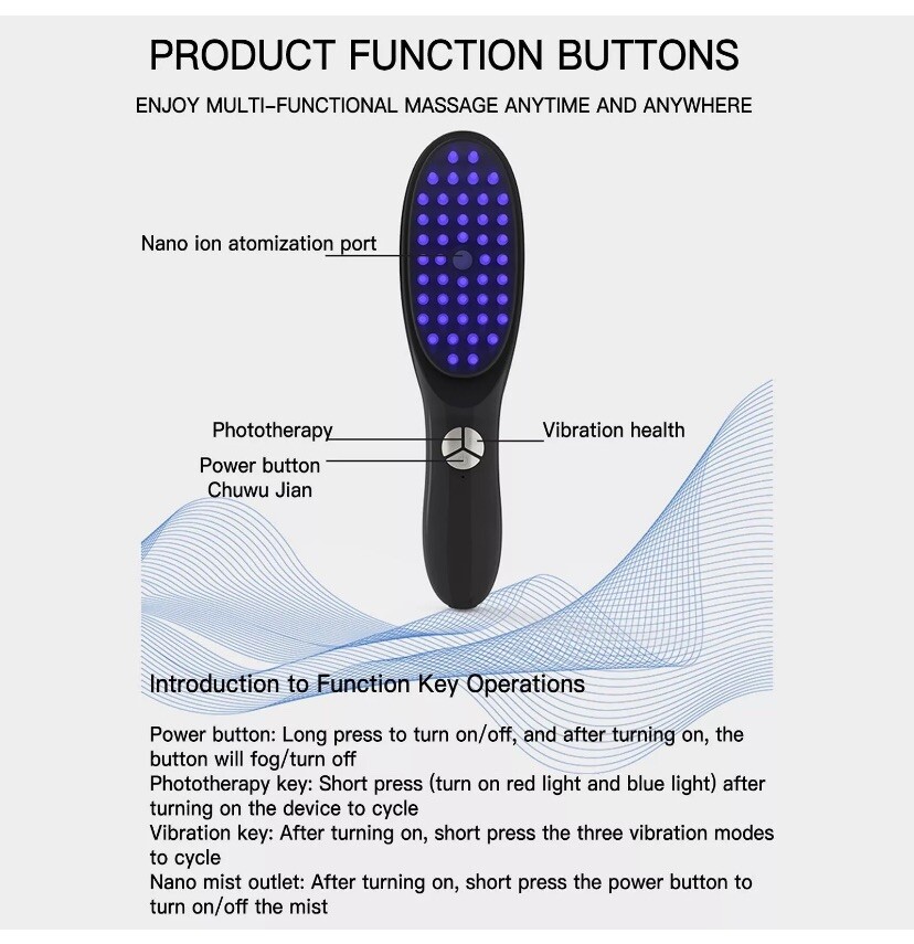 Smart Hair Brush LED Red Blue Light Therapy Steam Defuser Massage Scalp Treatmen