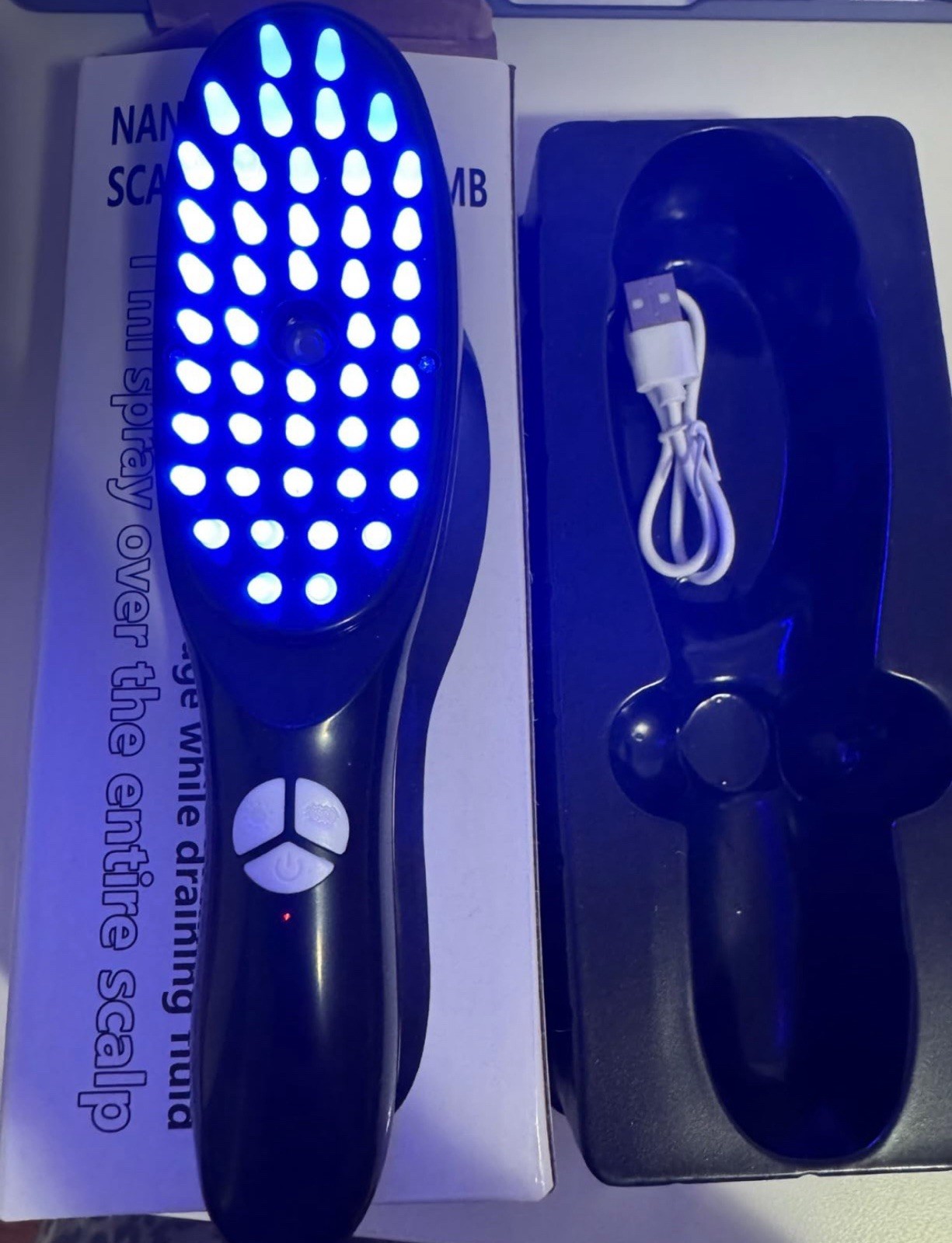 как выглядит Smart Hair Brush LED Red Blue Light Therapy Steam Defuser Massage Scalp Treatmen фото
