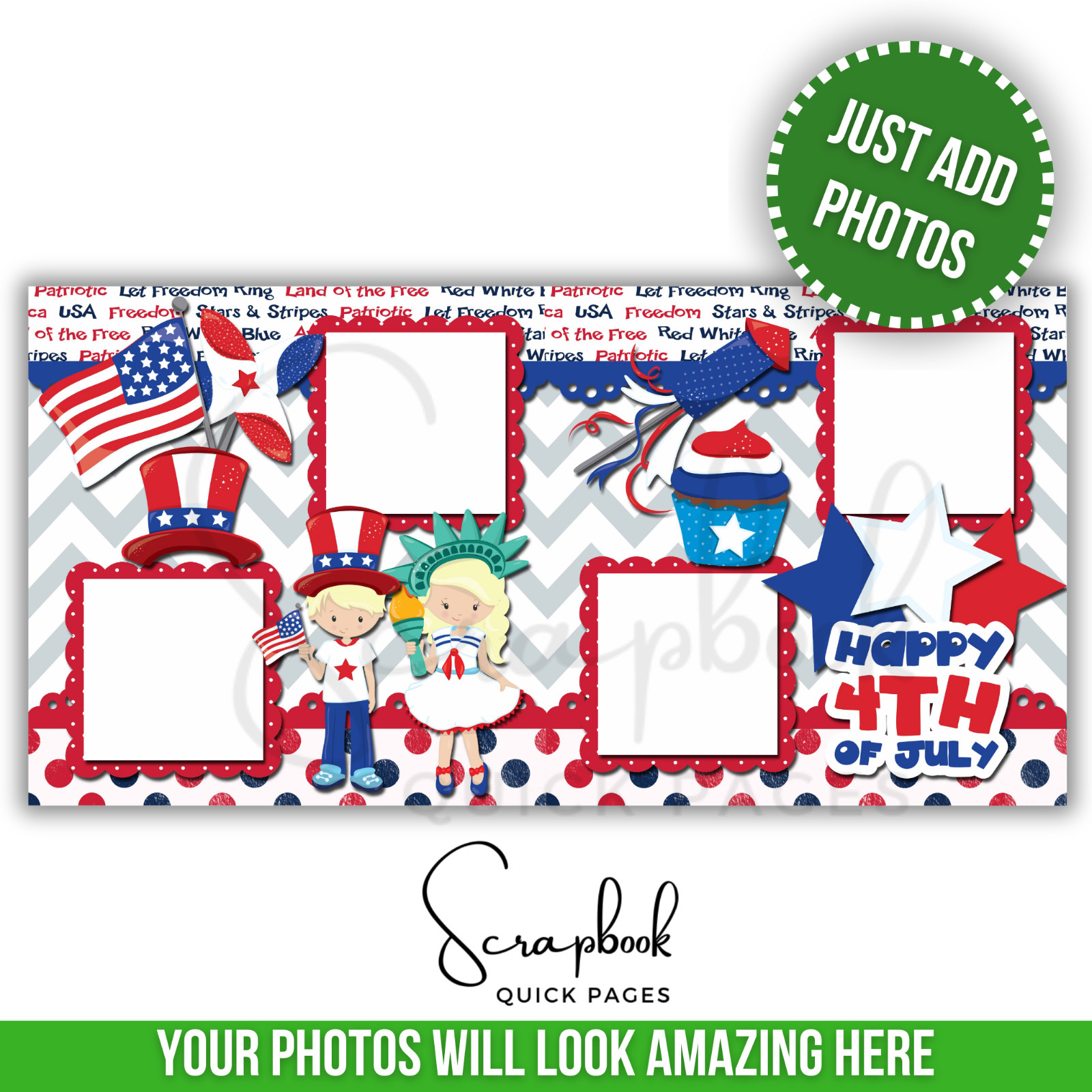 4th of July Scrapbook Quick Pages Independence Day PRINTED Premade 13BL