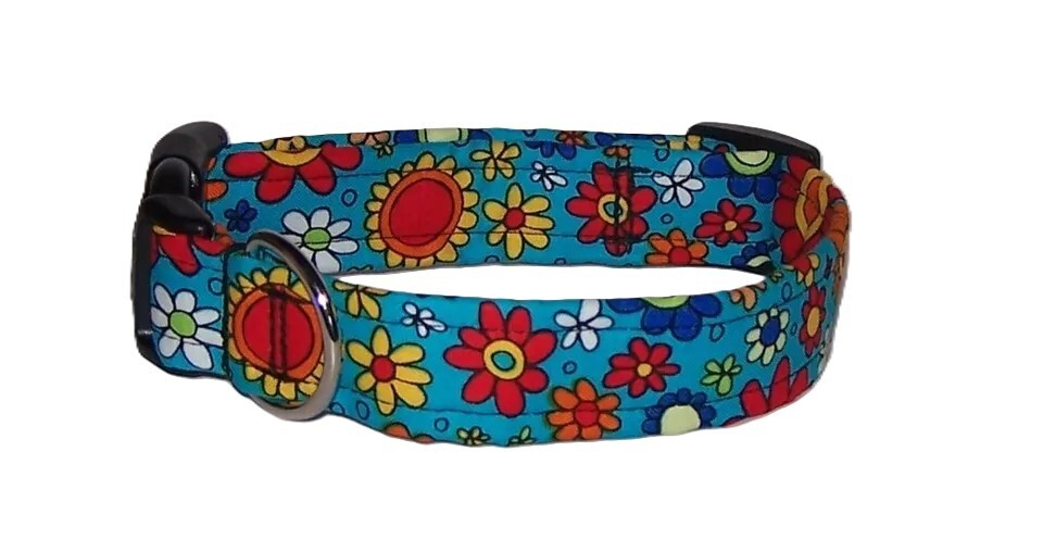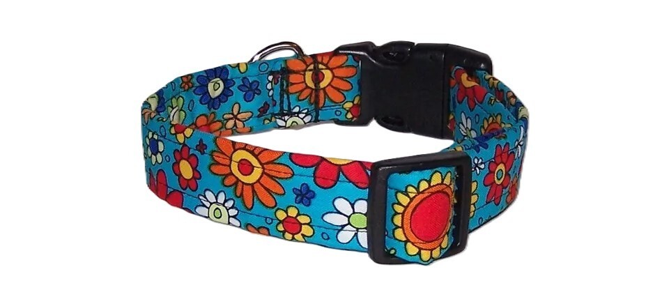 Wet Nose Designs Colorful Bright Blooms Dog Collar Flowers Floral Lime Teal Red