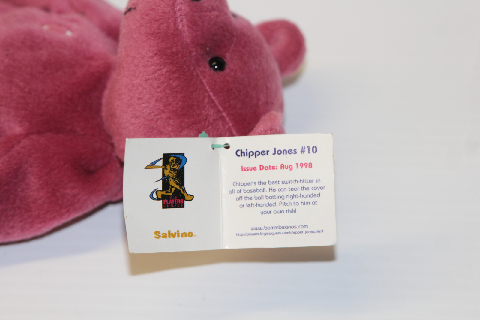 NWT Salvinos Bamm Beanos Beanie Babies 10 Chipper Jones Plum Teddy Bear 1998