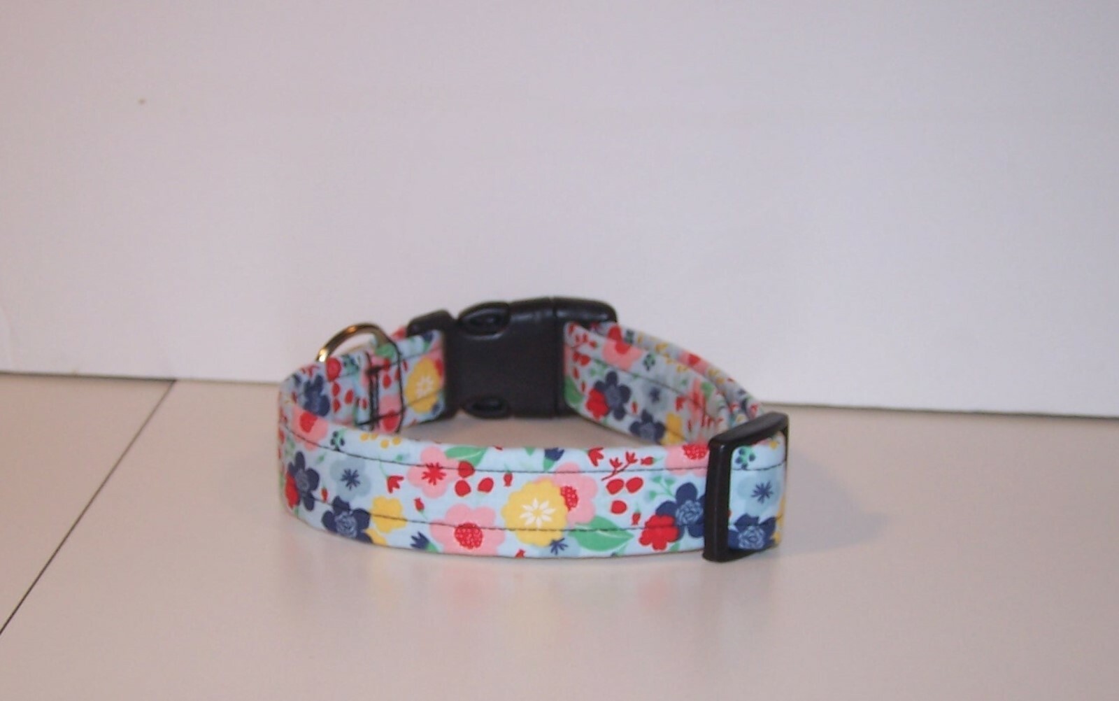 Wet Nose Designs Bright Flowers Dog Collar on Blue Spring Summer Floral Flower