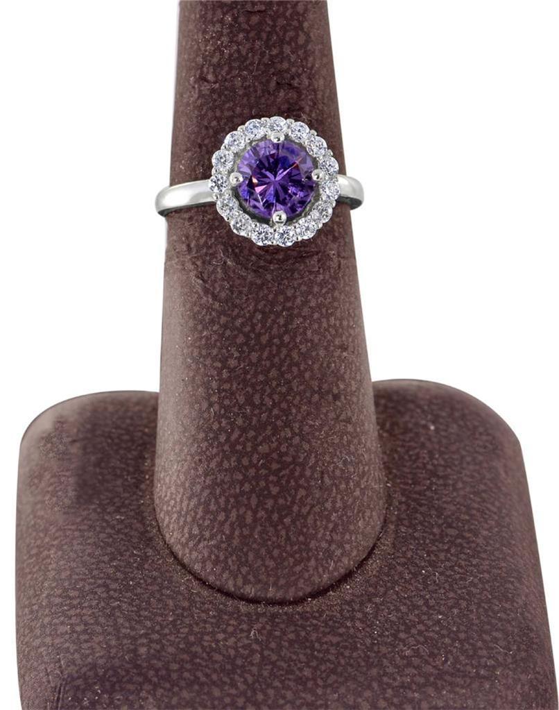 2.05ct TW 7.50 mm round Amethyst CZ Cluster Ring 925 Sterling Silver Size 7