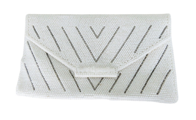 Vtg White Gray Seed Bead Clutch Purse Evening Bag Date Night Black Tie MCM