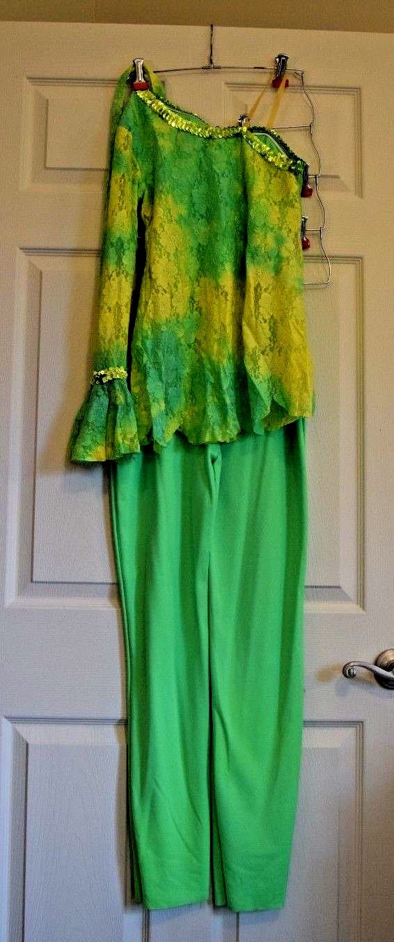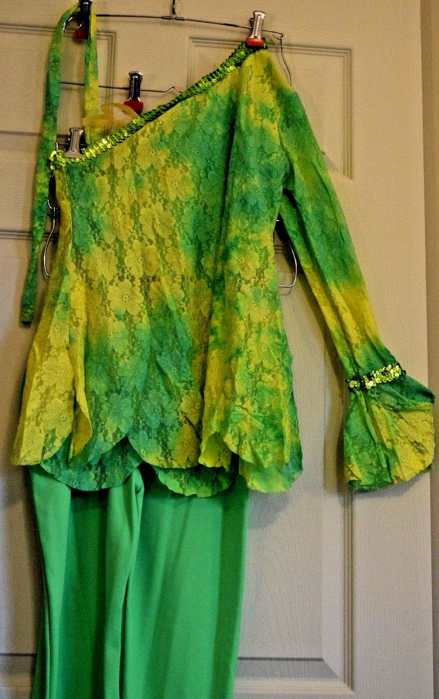 Dance Recital Costume-Curtain Call-Green-Yellow-Lace Top-Pants-Tap-Jazz-L K