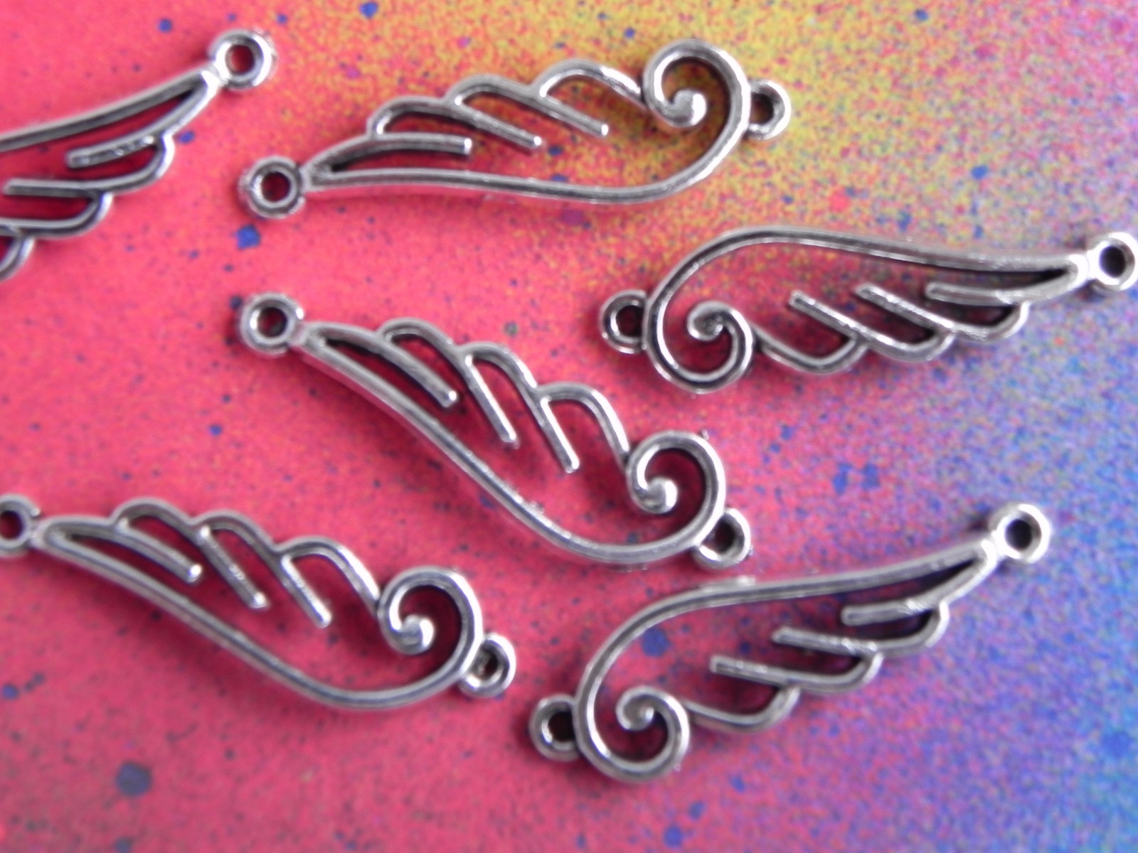 20 Angel Wings Charms Connector Bird Feather Wing Silver Metal Jewelry Component
