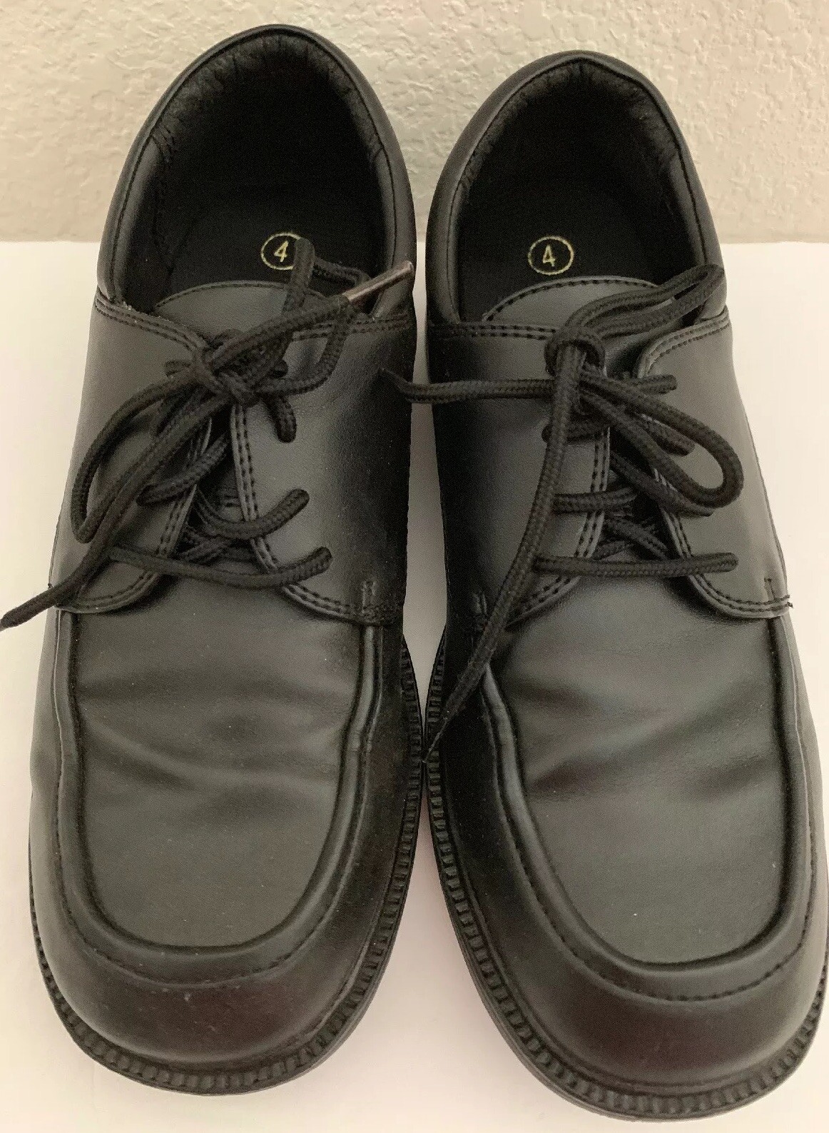 как выглядит Youth Boys Size 4 US SmartFit Black Dress Shoes Lace Up Boys Smart Fit EUC фото