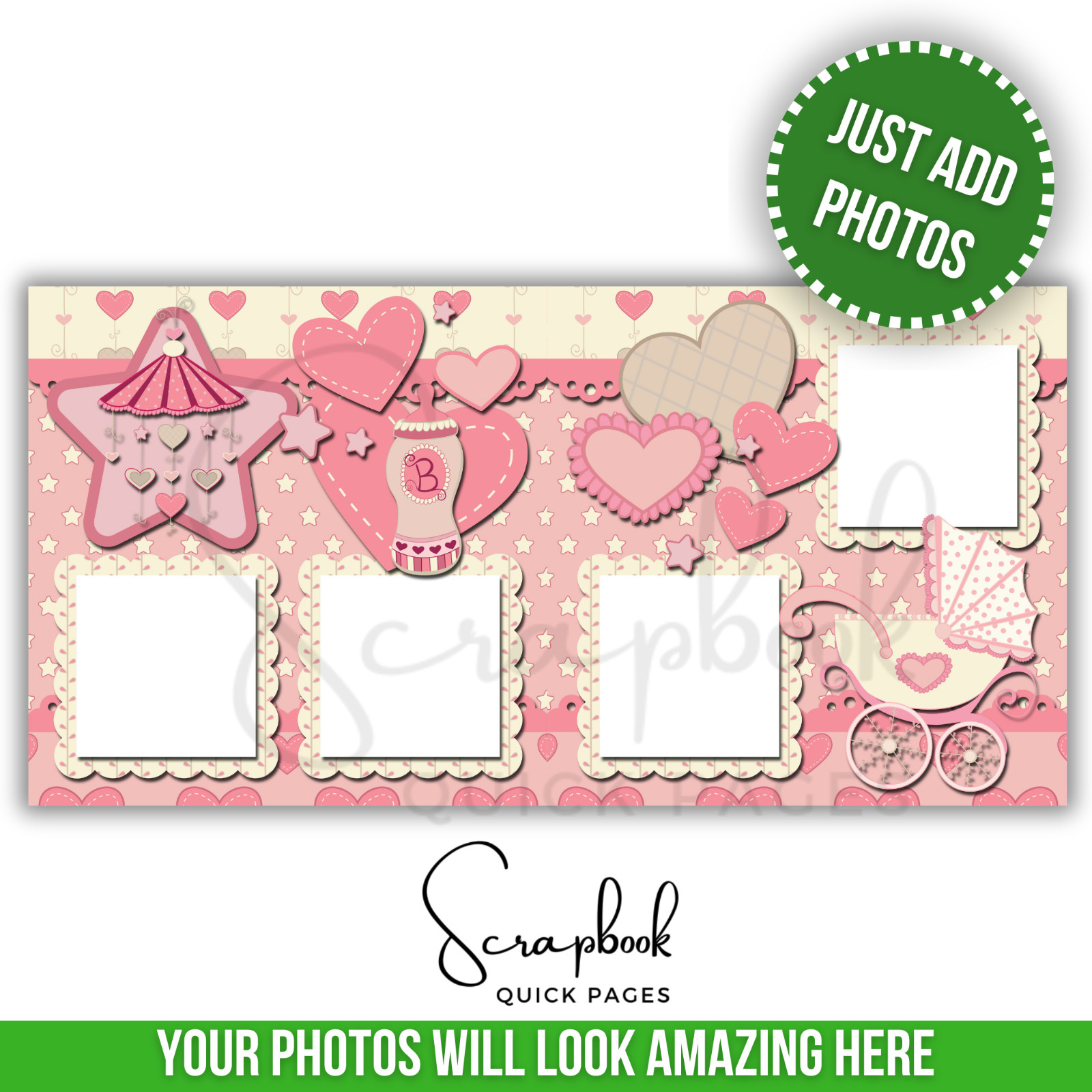 Baby Girl Scrapbook Pages Baby Shower PRINTED Premade Scrapbook Quick Pages 46